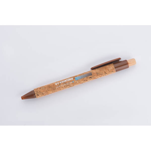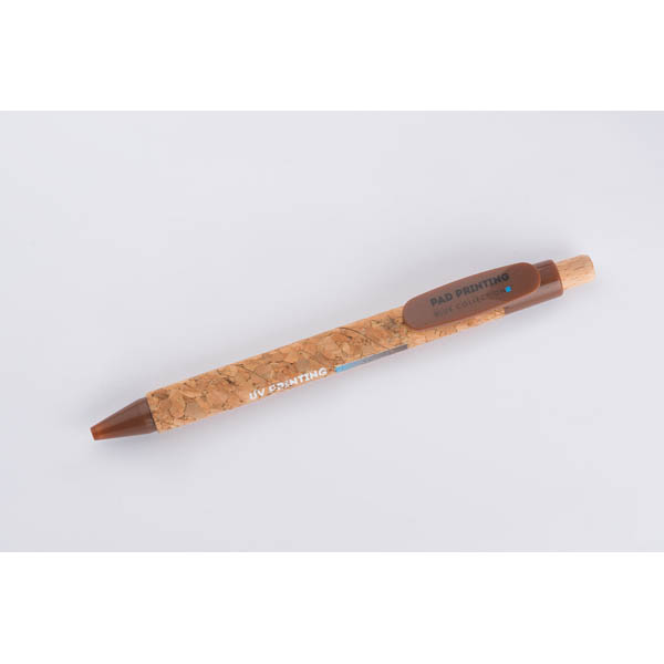 Długopis KORTE nawiązuje swoim wyglądem do idei recyclingu. Korpus został wykonany z naturalnego korka, a przycisk z drewna. Wykończenia z tworzywa sztucznego w żywych kolorach dodają mu uroku. Wkład w kolorze niebieskim.