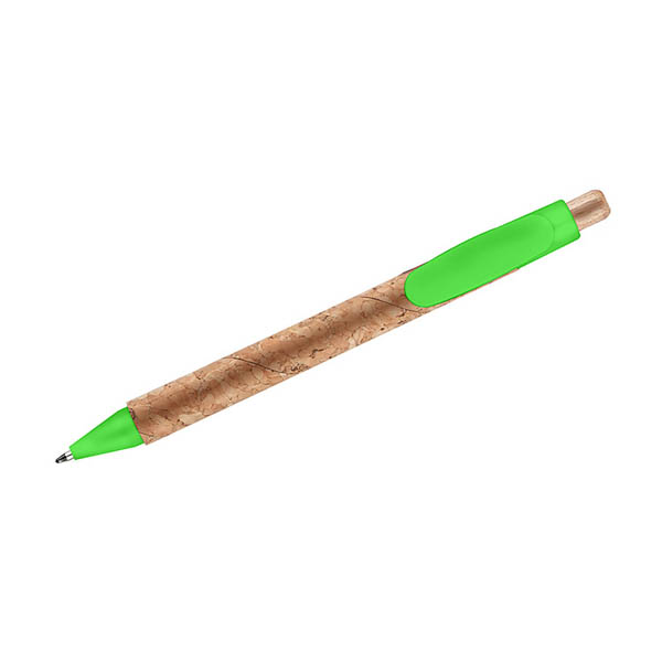 Długopis KORTE nawiązuje swoim wyglądem do idei recyclingu. Korpus został wykonany z naturalnego korka, a przycisk z drewna. Wykończenia z tworzywa sztucznego w żywych kolorach dodają mu uroku. Wkład w kolorze niebieskim.