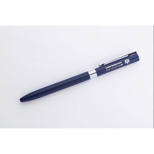 Długopis GELLE to elegancja i wygoda pisania w jednym. Długopis wykonany jest z metalu z wykończeniami chromowanymi lub złoconymi i posiada mechanizm typu twist. Żelowy wkład o grubości 0,5 mm w kolorze niebieskim.