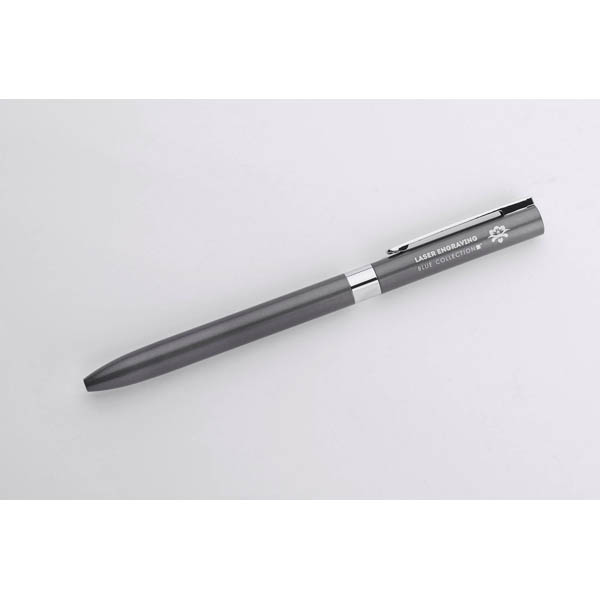 Długopis GELLE to elegancja i wygoda pisania w jednym. Długopis wykonany jest z metalu z wykończeniami chromowanymi lub złoconymi i posiada mechanizm typu twist. Żelowy wkład o grubości 0,5 mm w kolorze niebieskim.