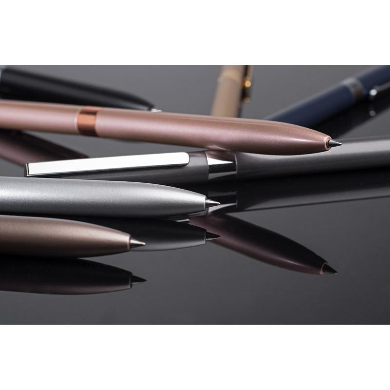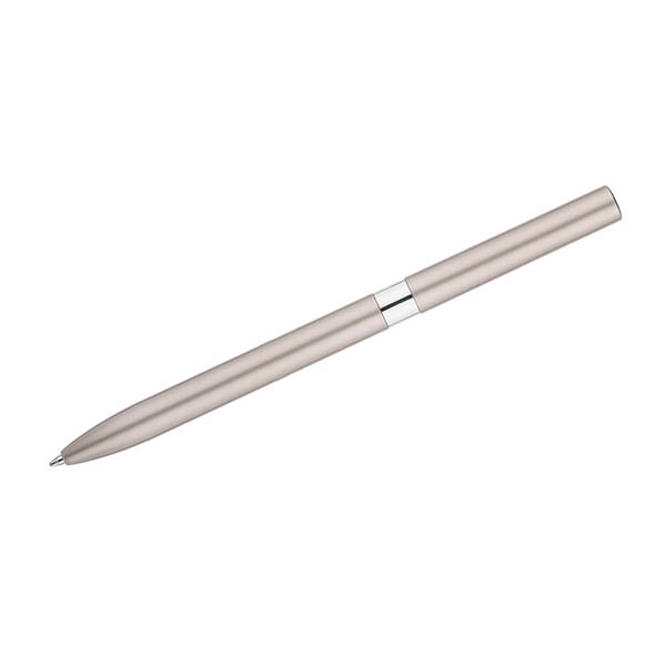 Długopis GELLE to elegancja i wygoda pisania w jednym. Długopis wykonany jest z metalu z wykończeniami chromowanymi lub złoconymi i posiada mechanizm typu twist. Żelowy wkład o grubości 0,5 mm w kolorze niebieskim.
