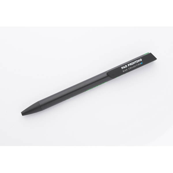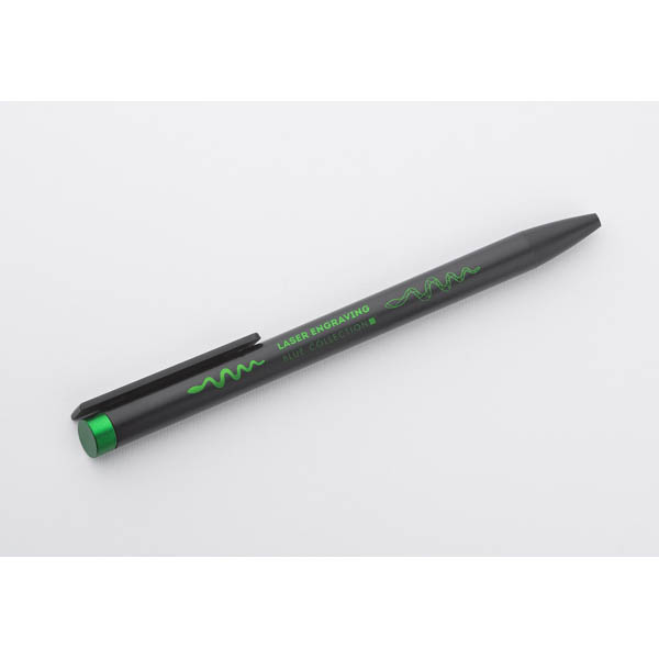 ALI to wyjątkowy długopis umożliwiający wykonanie znakowania w kolorze zbliżonym do końcówki długopisu oraz całkowicie zaskakującego grawerowania w dwóch kolorach - w kolorze zbliżonym do końcówki długopisu oraz białym (kolor aluminium). Czarny metalowy korpus oraz czarne wykończenia stanowią idealne tło dla kolorowego grawerowania. Długopis automatyczny. Wkład typu X20 o grubości 1.0 mm w kolorze niebieskim.