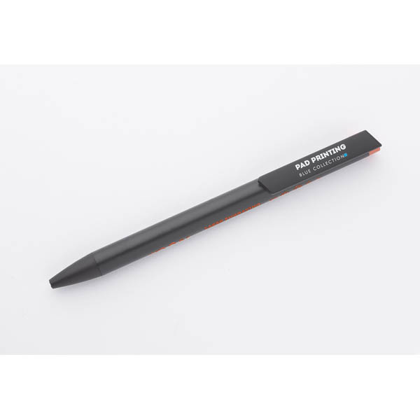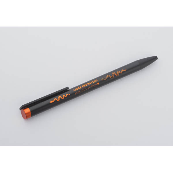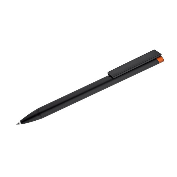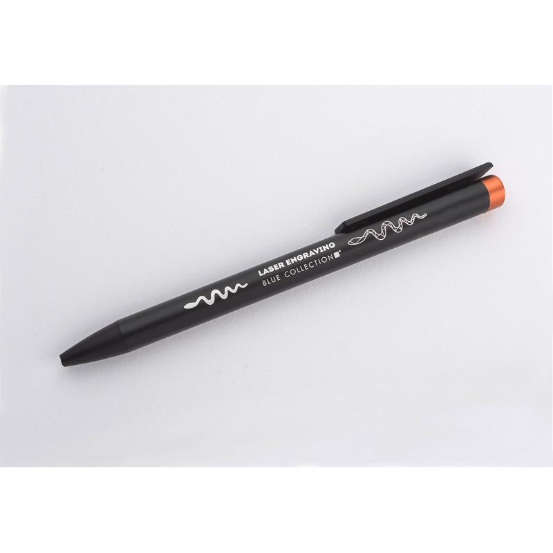ALI to wyjątkowy długopis umożliwiający wykonanie znakowania w kolorze zbliżonym do końcówki długopisu oraz całkowicie zaskakującego grawerowania w dwóch kolorach - w kolorze zbliżonym do końcówki długopisu oraz białym (kolor aluminium). Czarny metalowy korpus oraz czarne wykończenia stanowią idealne tło dla kolorowego grawerowania. Długopis automatyczny. Wkład typu X20 o grubości 1.0 mm w kolorze niebieskim.