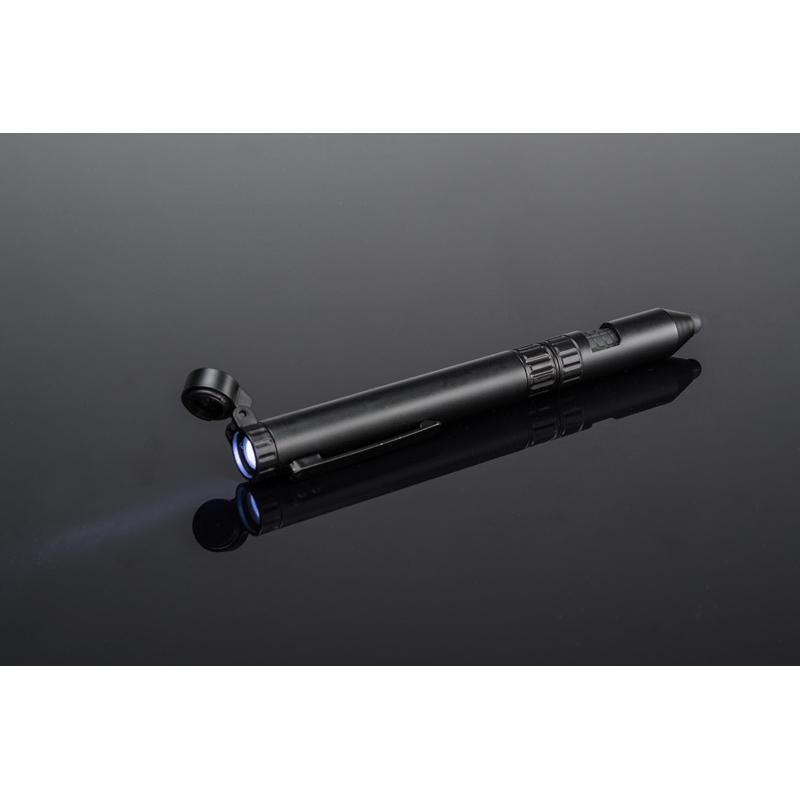 GYVER będzie idealnym podarunkiem dla prawdziwych gadżeciarzy, którzy od upominków reklamowych oczekują zaskakujących funkcji. Ten niepozorny mały przedmiot posiada aż 7 funkcji: długopis, touch pen, stojak do telefonu, latarka, 2 śrubokręty, kompas. Wkład w kolorze niebieskim.