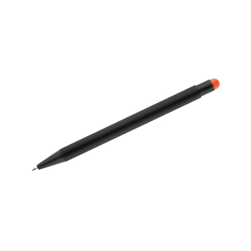 NIRO to długopis z wyjątkowym efektem znakowania. Kolor grawera jest zbliżony do koloru końcówki touch do obsługi ekranów dotykowych. Korpus wykonany z aluminium pokrytego gumowaną powłoką typu soft touch. Wykończenia w kolorze czarnym. Długopis automatyczny. Wkład typu G2 w kolorze niebieskim.