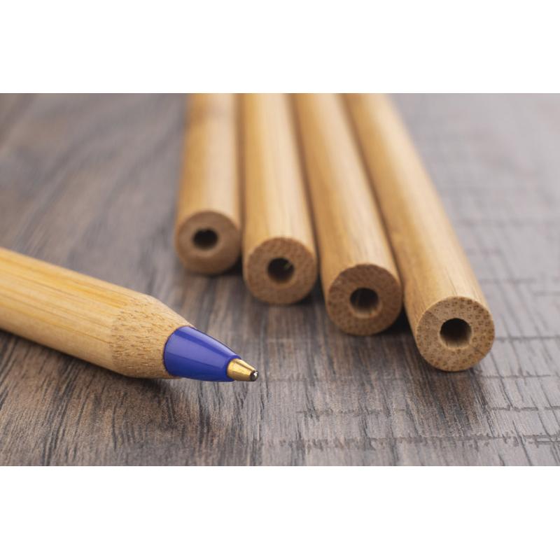 LASS to prosty długopis, którego korpus został wykonany w 100% z naturalnego bambusa. Długopis bez zatyczki. Wkład zabezpieczony przed wysychaniem za pomocą wosku. Wkład typu X20 w kolorze niebieskim.