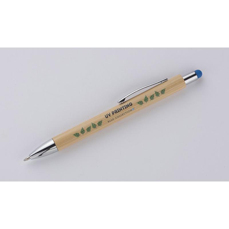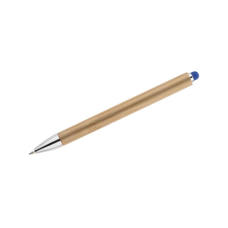 TUSO to długopis, którego korpus został w całości wykonany z bambusa. Chromowane wykończenia nadają mu elegancji. Kolorowa końcówka do obsługi ekranów dotykowych stanowi ciekawą ozdobę. Długopis automatyczny. Wkład typu G2 w kolorze niebieskim.