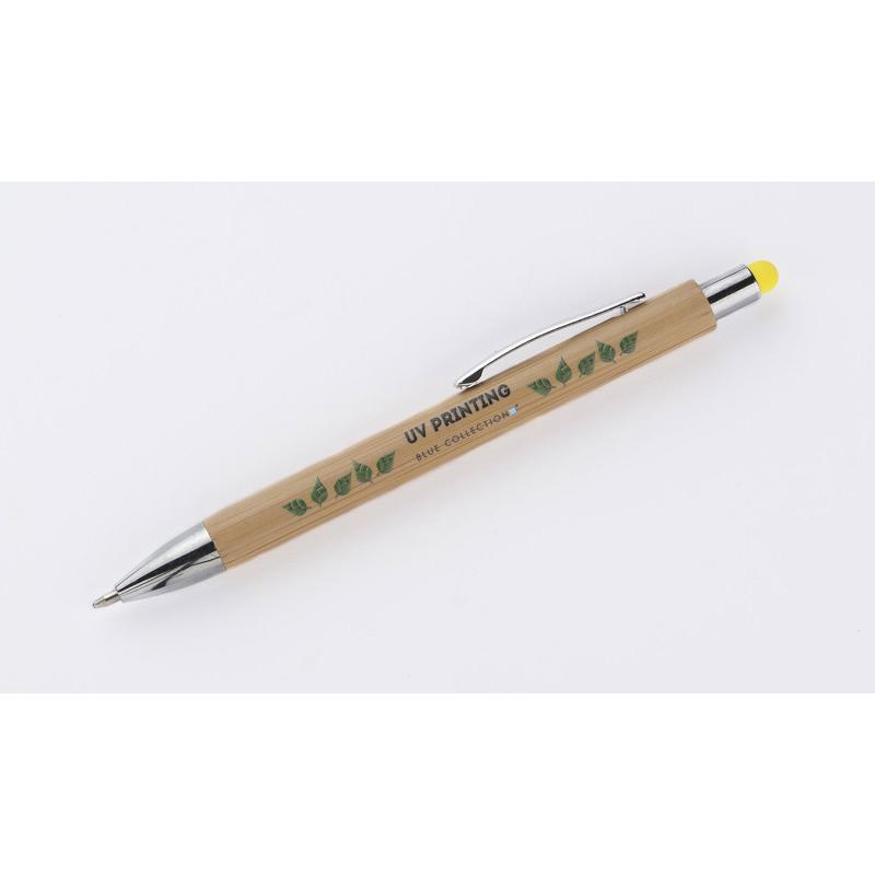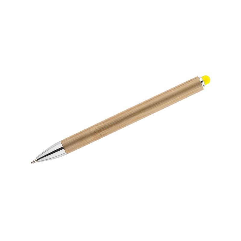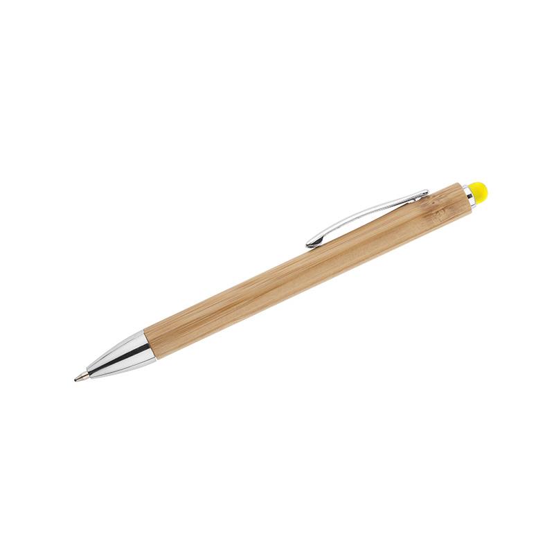 TUSO to długopis, którego korpus został w całości wykonany z bambusa. Chromowane wykończenia nadają mu elegancji. Kolorowa końcówka do obsługi ekranów dotykowych stanowi ciekawą ozdobę. Długopis automatyczny. Wkład typu G2 w kolorze niebieskim.