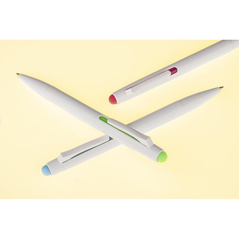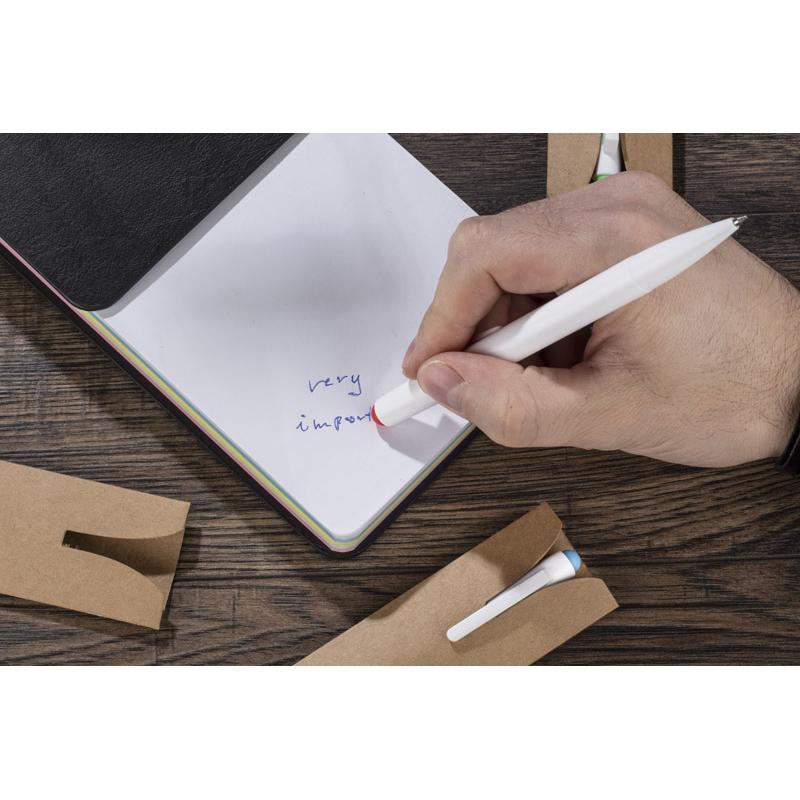 Długopis pozwalający na korektę wszystkich błędów to wymarzony gadżet dla uczniów. Specjalny wkład pozwala na zmazanie napisanego tekstu za pomocą gumki umieszczonej na górze długopisu. MAZZI wykonany jest z tworzywa w białym kolorze z kolorowymi akcentami. Zapakowany w estetyczne etui z papieru. Długopis automatyczny, wkład w kolorze niebieskim.
