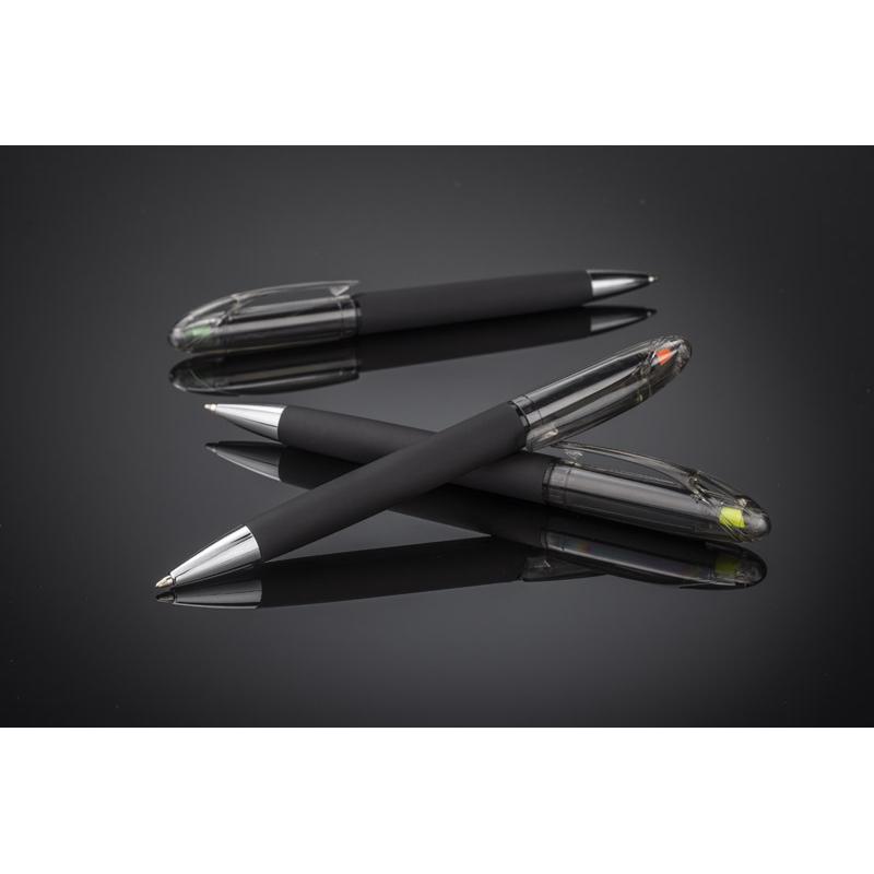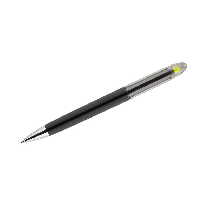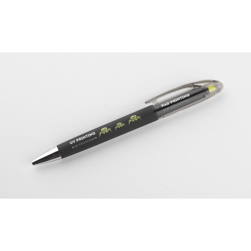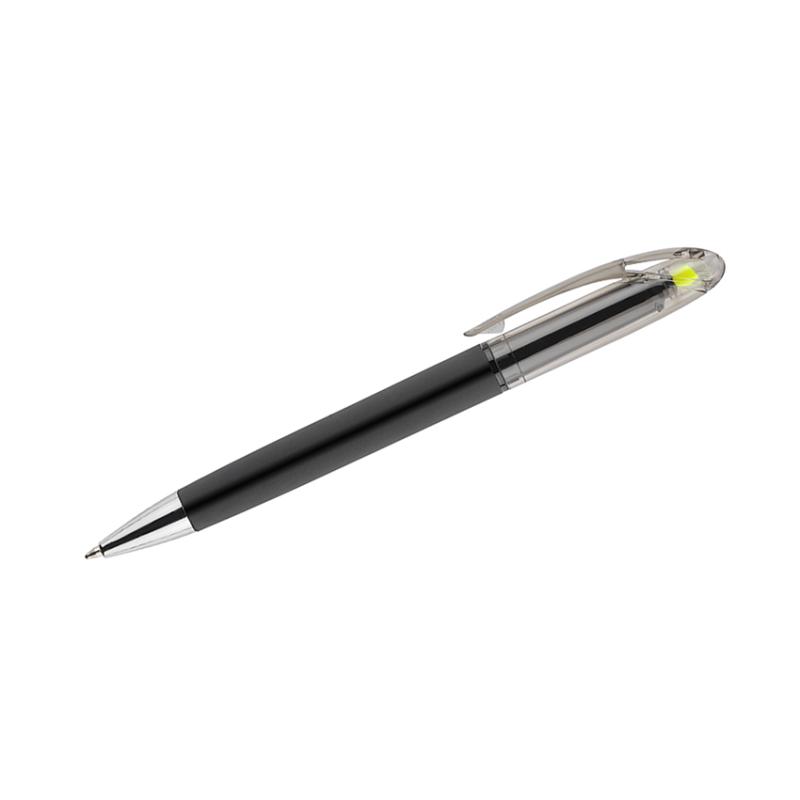 HILIG to dwa przydatne gadżety w jednym. Na górze tradycyjnego długopisu został umieszczony zakreślacz w żywym kolorze. Pokryty gumową powłoką korpus długopisu jest niezwykle przyjemny w dotyku. Długopis z mechanizmem typu twist, wkład długopisu w kolorze niebieskim.