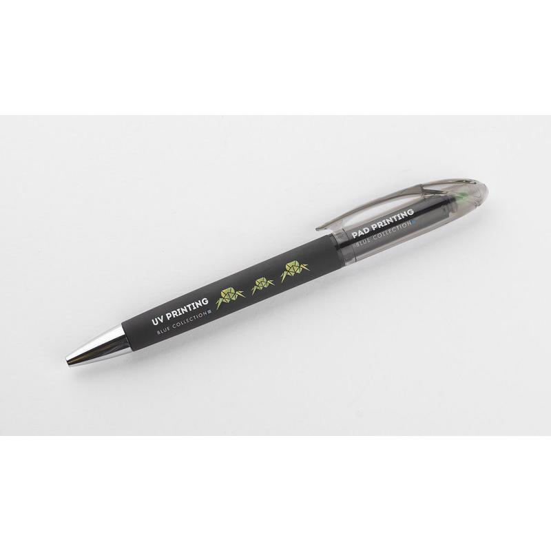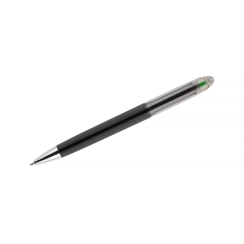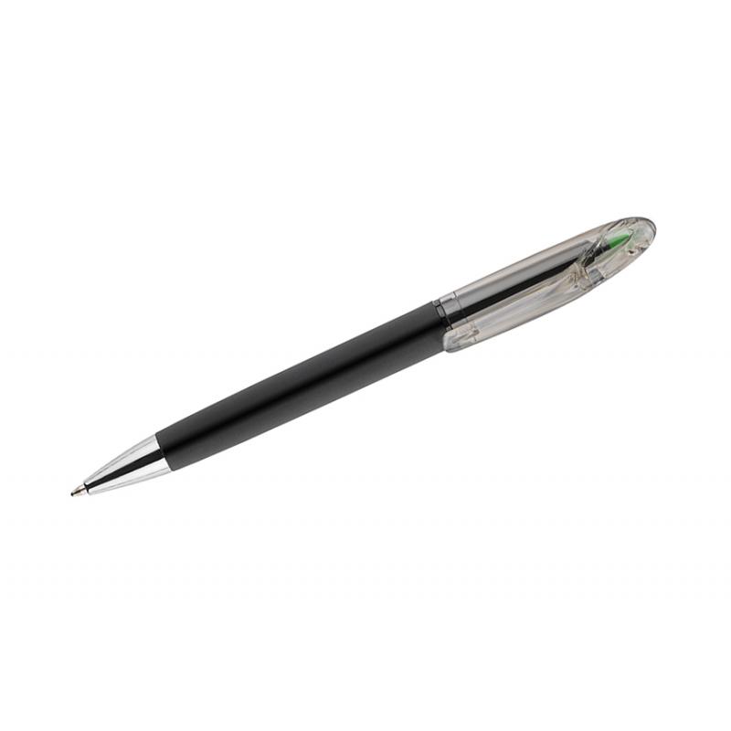 HILIG to dwa przydatne gadżety w jednym. Na górze tradycyjnego długopisu został umieszczony zakreślacz w żywym kolorze. Pokryty gumową powłoką korpus długopisu jest niezwykle przyjemny w dotyku. Długopis z mechanizmem typu twist, wkład długopisu w kolorze niebieskim.