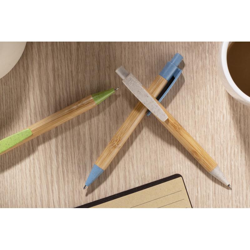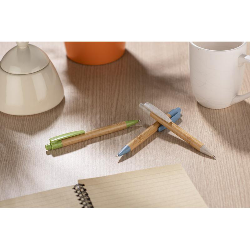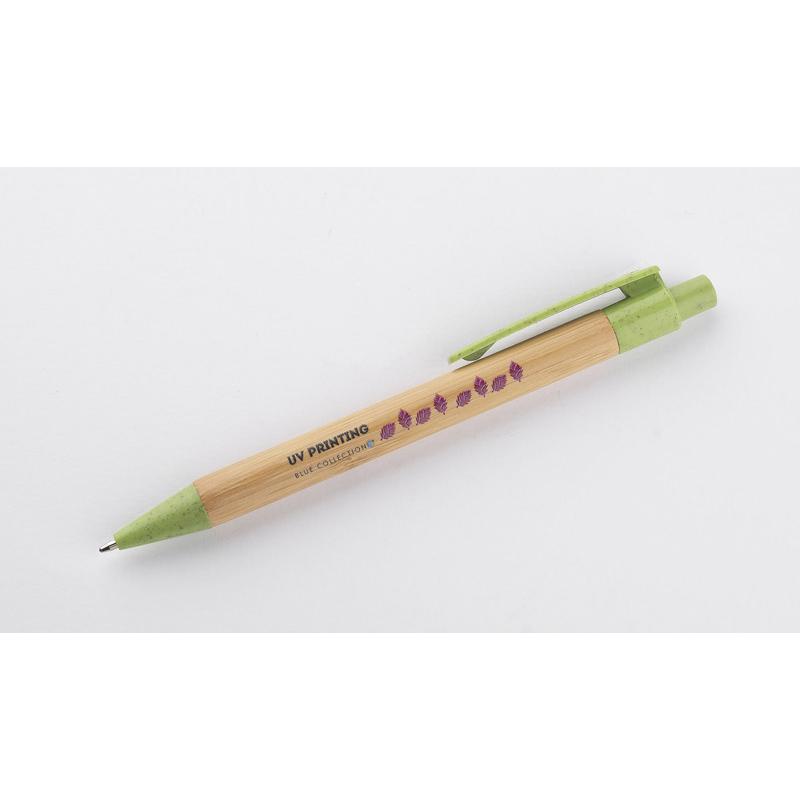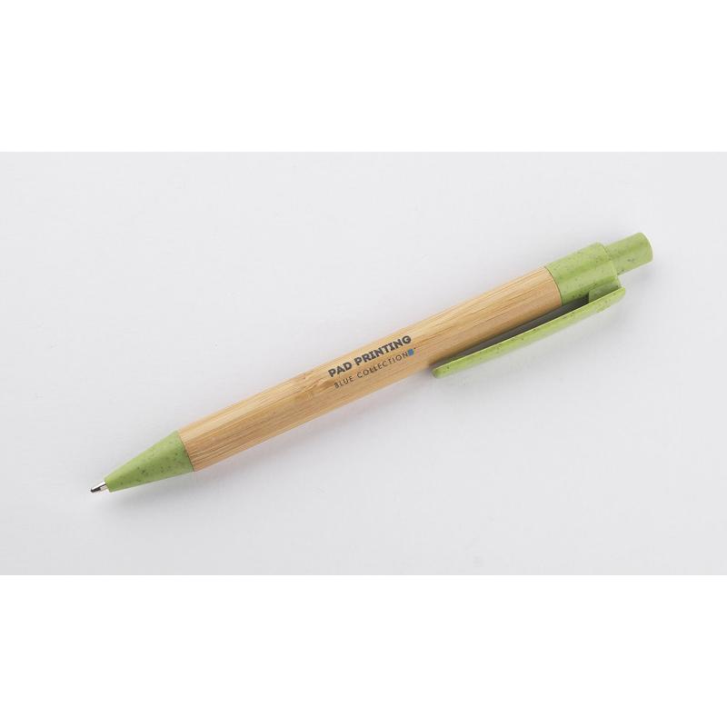 BAMMO to klasyczny długopis wykonany z materiałów przyjaznych środowisku. Bambusowy korpus połączony został z wykończeniami z tworzywa wykonanego w 50% ze słomy. Długopis automatyczny, wkład w kolorze niebieskim.