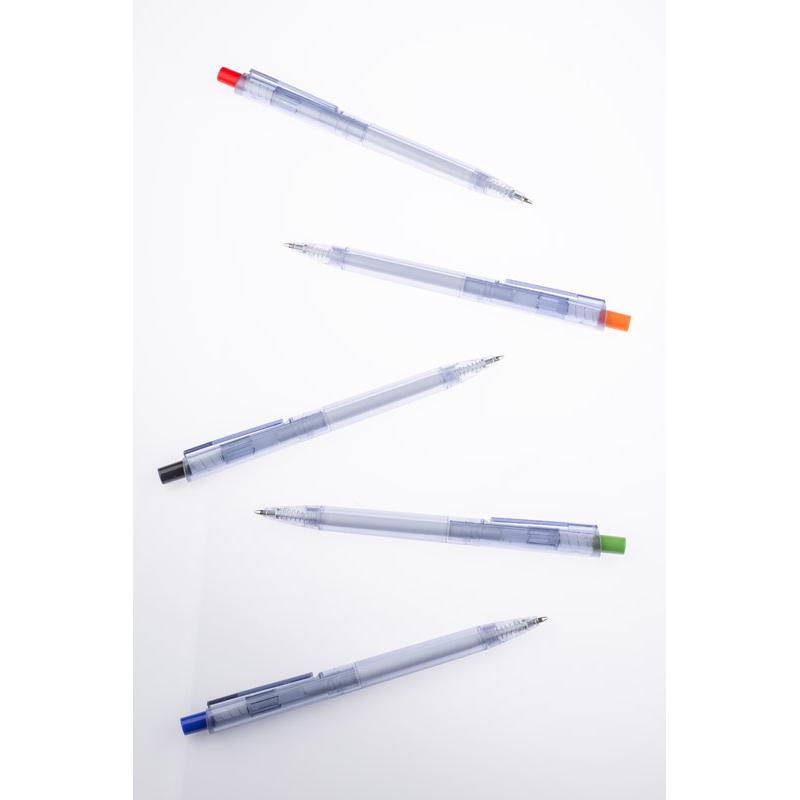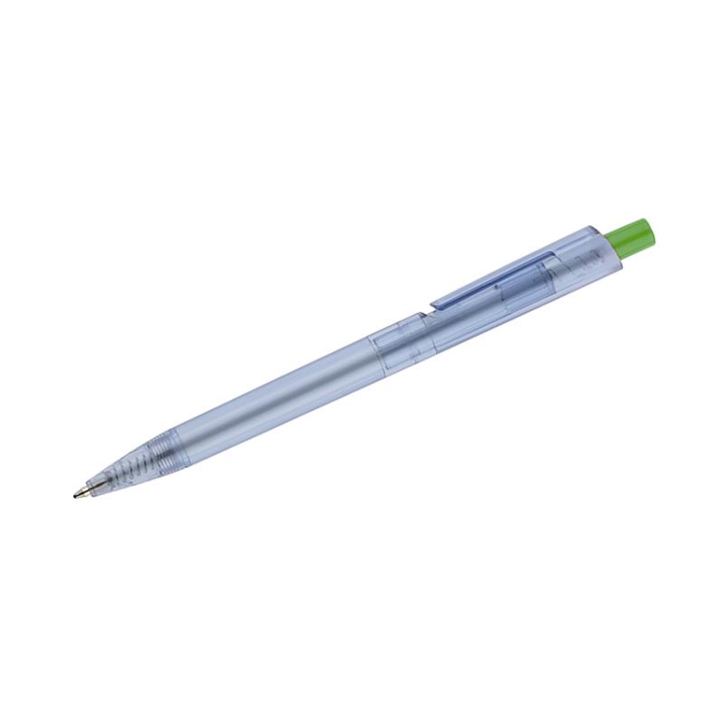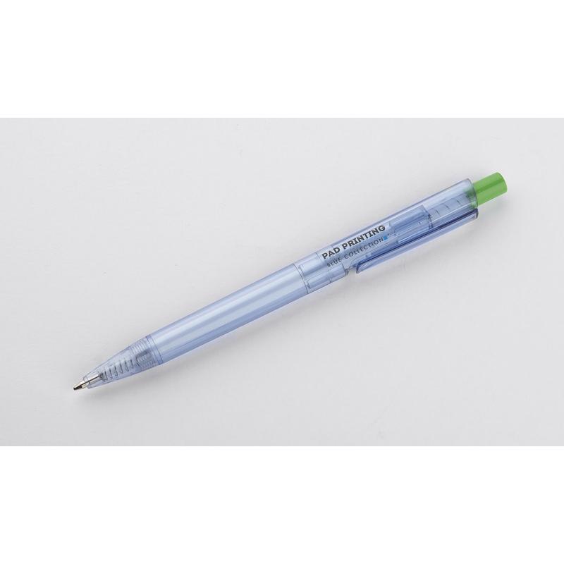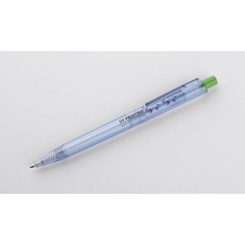 Długopis RECYKLO wytworzony w całości z tworzywa rPET (PET po recyklingu) jest odpowiedzią na poszukiwanie sposobów na zagospodarowanie odpadów z tworzywa sztucznego. Przezroczysty korpus w kolorze niebieskim przypomina wyglądem butelki do wody, z których został wyprodukowany. Długopis automatyczny, wkład typu G2 w kolorze niebieskim.