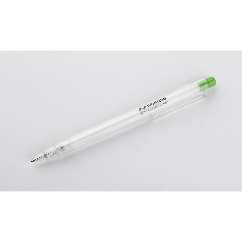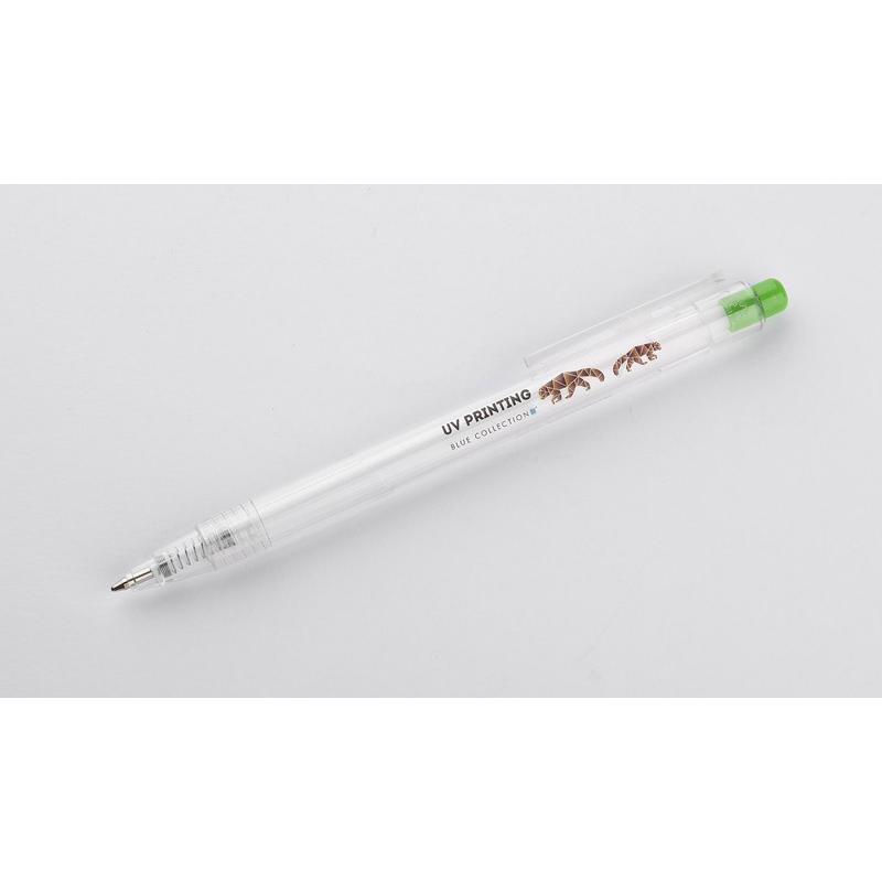 Długopis KLIIR powstał w całości z tworzywa PET po recyklingu (rPET). Ten prosty gadżet pokazuje nam, jak świadomie możemy gospodarować odpadami z tworzywa sztucznego i tworzyć z nich nowe przydatne przedmioty. Przezroczysty bezbarwny korpus długopisu ładnie połączony jest z przyciskiem w żywych kolorach. Długopis automatyczny, wkład typy G2 w kolorze niebieskim.