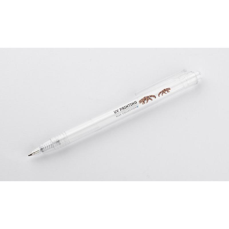 Długopis KLIIR powstał w całości z tworzywa PET po recyklingu (rPET). Ten prosty gadżet pokazuje nam, jak świadomie możemy gospodarować odpadami z tworzywa sztucznego i tworzyć z nich nowe przydatne przedmioty. Przezroczysty bezbarwny korpus długopisu ładnie połączony jest z przyciskiem w żywych kolorach. Długopis automatyczny, wkład typy G2 w kolorze niebieskim.