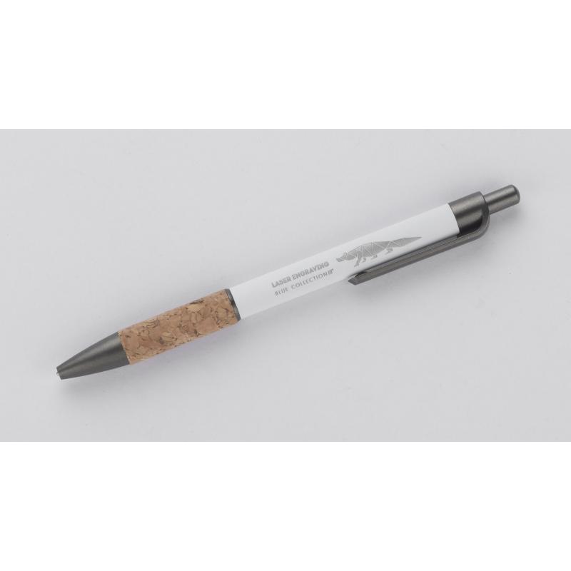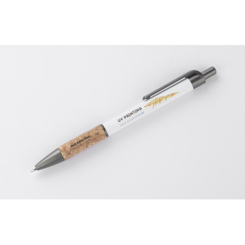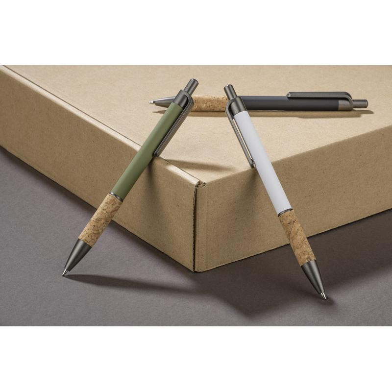 Długopis KUBOD to klasyczny model o prostym, eleganckim kształcie, idealny do znakowania. Aluminiowy korpus pokryty został matową powłoką soft touch, która zwiększa komfort użytkowania. Naturalny korek w części chwytnej przyciąga uwagę i wyróżnia produkt na tle standardowych modeli. Metaliczne akcenty z tworzywa dodają całości nowoczesnego charakteru. Długopis posiada mechanizm automatyczny i jest wyposażony w niebieski wkład typu X20 (wymienny, niedostępny w naszej ofercie).