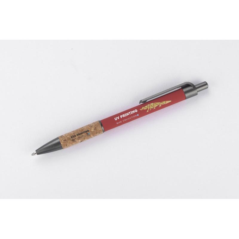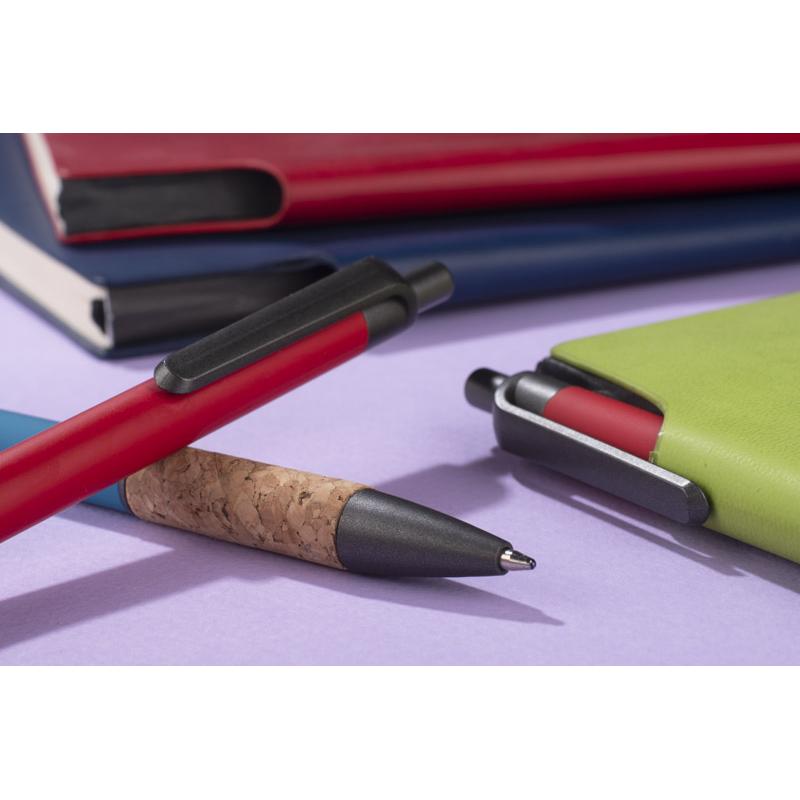 Długopis KUBOD to klasyczny model o prostym, eleganckim kształcie, idealny do znakowania. Aluminiowy korpus pokryty został matową powłoką soft touch, która zwiększa komfort użytkowania. Naturalny korek w części chwytnej przyciąga uwagę i wyróżnia produkt na tle standardowych modeli. Metaliczne akcenty z tworzywa dodają całości nowoczesnego charakteru. Długopis posiada mechanizm automatyczny i jest wyposażony w niebieski wkład typu X20 (wymienny, niedostępny w naszej ofercie).