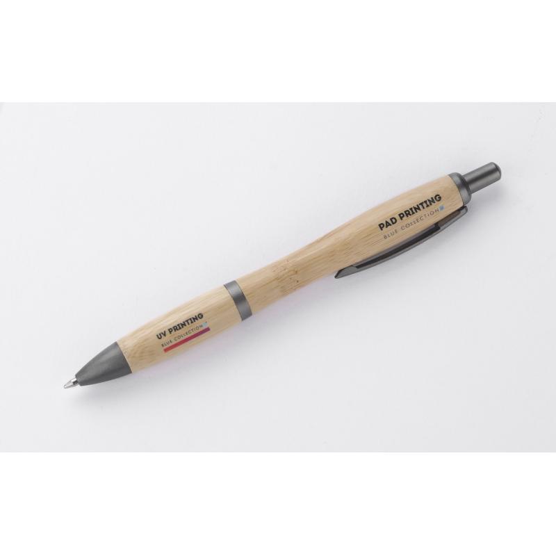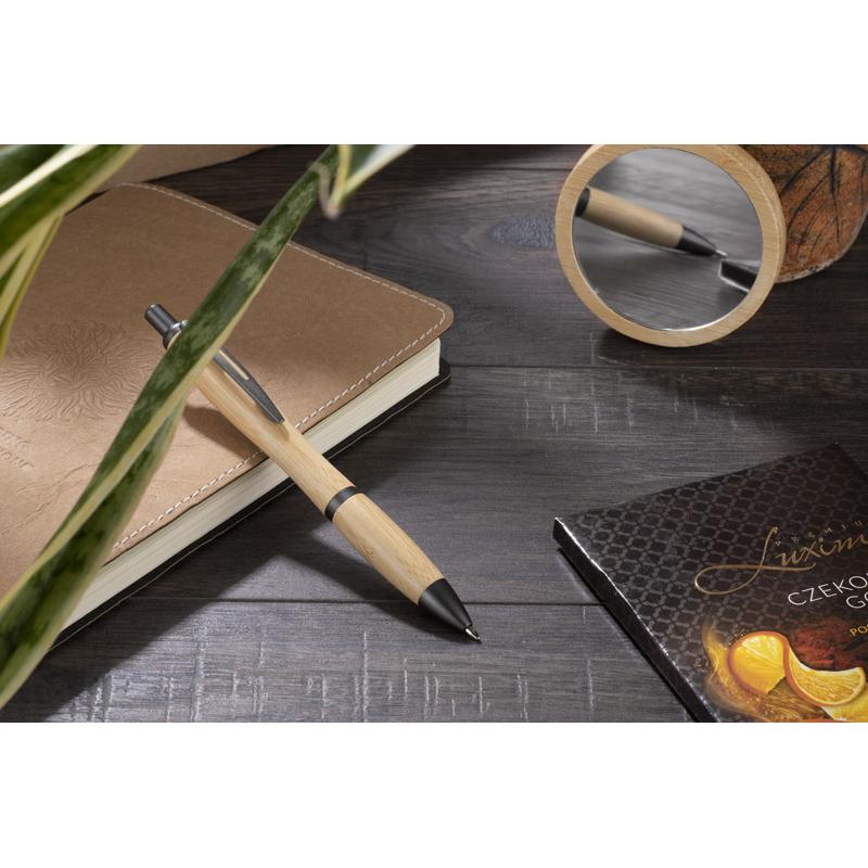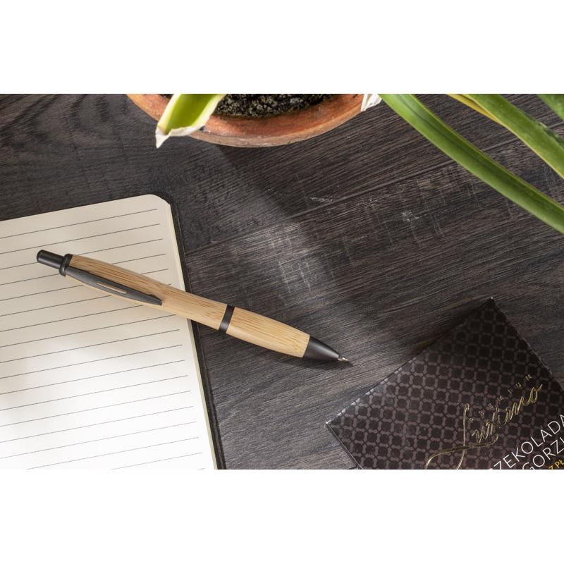 SIGO to popularny długopis w nowym bambusowym wykończeniu. Długopis ma ergonomiczny kształt zapewniający komfortowe pisanie. Grafitowe wykończenia nadają mu elegancji. Długopis automatyczny. Wkład typu G2 w kolorze niebieskim.