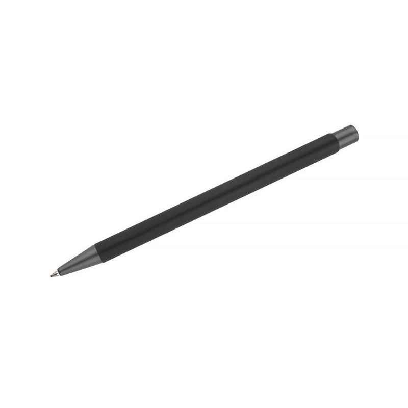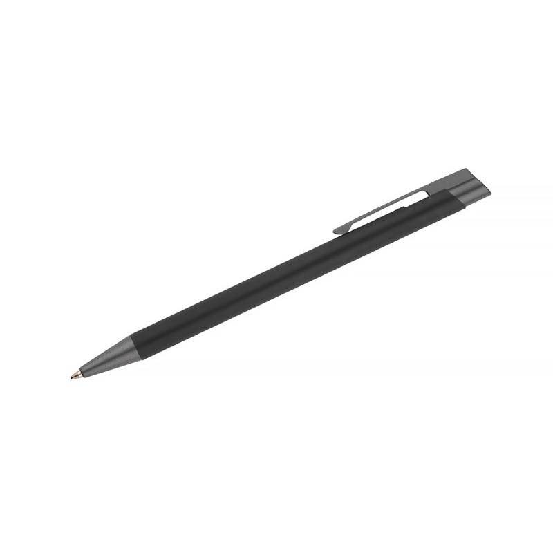 Długopis OPTIMA łączy w sobie elegancję i prostotę. Smukły korpus wykonany został z aluminium i pokryty gumowaną farbą, która tworzy przyjemną w dotyku powłokę. Długopis automatyczny. Wykończenia w kolorze grafitowym. Wkład w kolorze niebieskim.