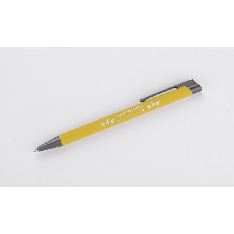 Długopis OPTIMA łączy w sobie elegancję i prostotę. Smukły korpus wykonany został z aluminium i pokryty gumowaną farbą, która tworzy przyjemną w dotyku powłokę. Długopis automatyczny. Wykończenia w kolorze grafitowym. Wkład w kolorze niebieskim.
