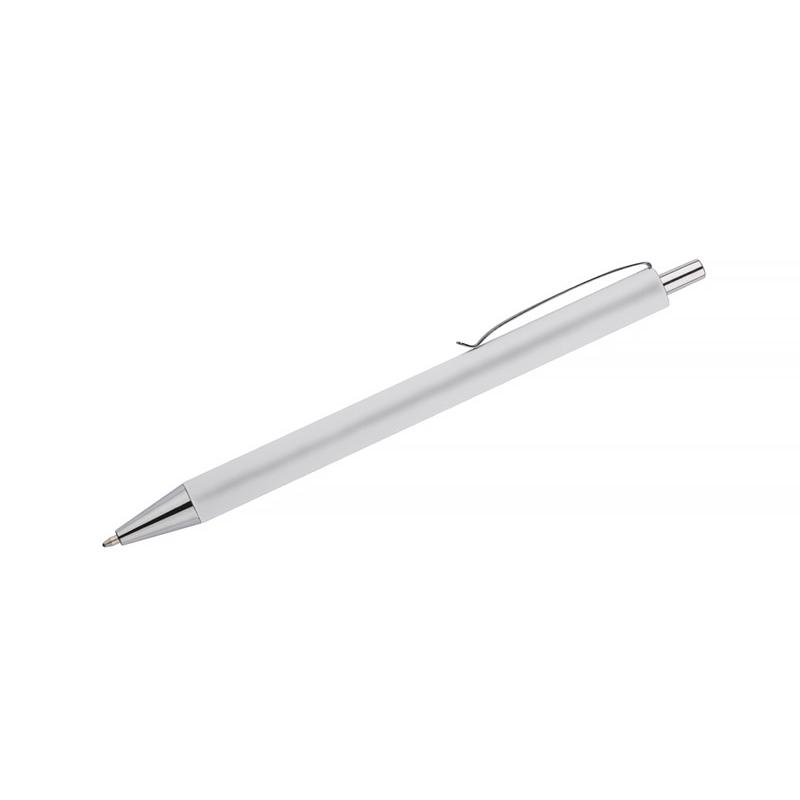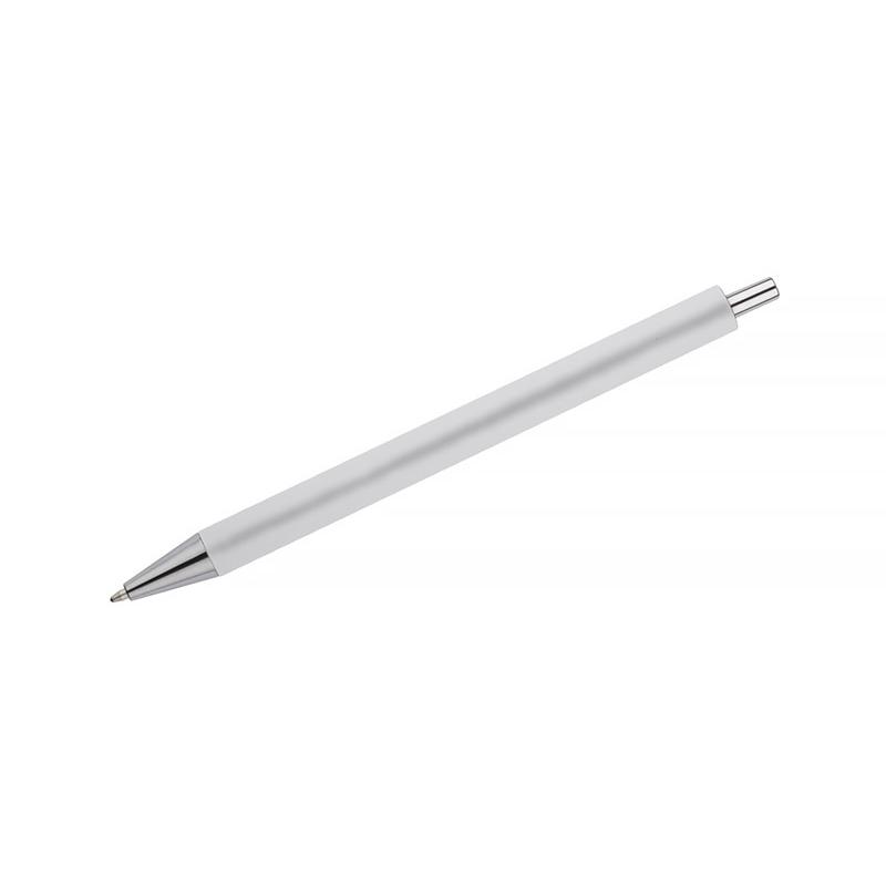 Długopis NOVI wykończony przyjemna w dotyku gumowana powierzchnią z chromowanymi elemantami w kolorze srebrnym. Wkład w kolorze niebieskim.