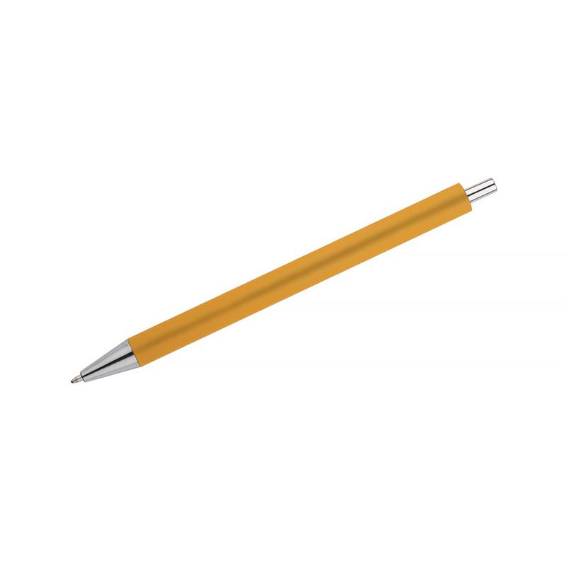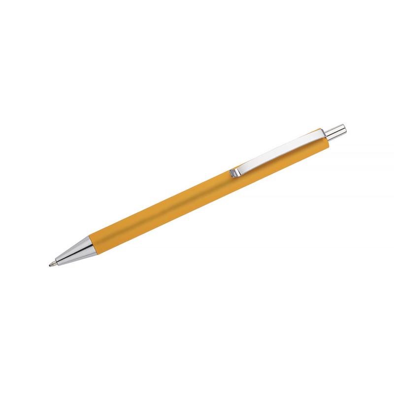 Długopis NOVI wykończony przyjemna w dotyku gumowana powierzchnią z chromowanymi elemantami w kolorze srebrnym. Wkład w kolorze niebieskim.