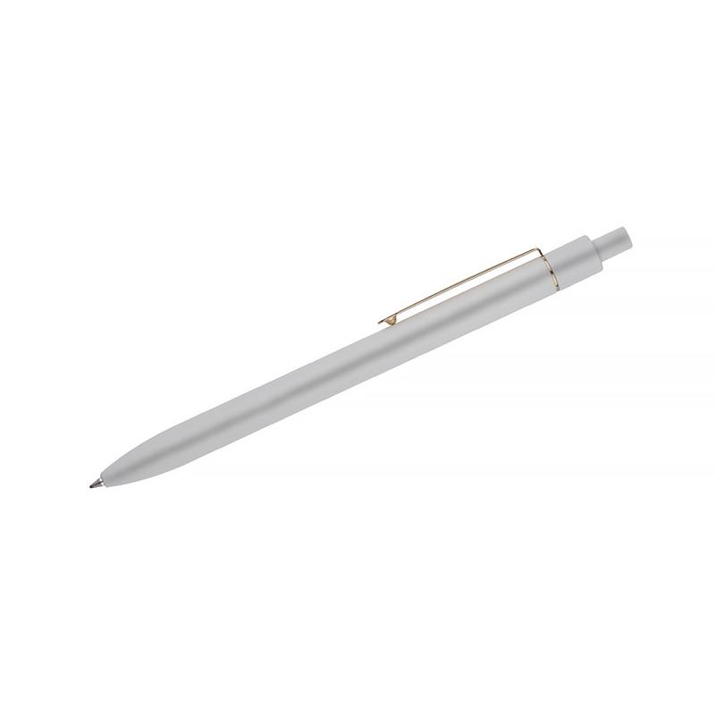 Stylowy długopis aluminiowy z matowym wykończeniem i klipem w kolorze złotym.