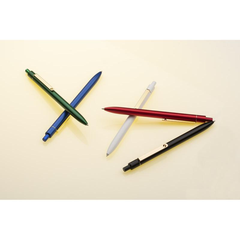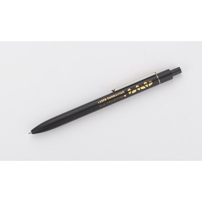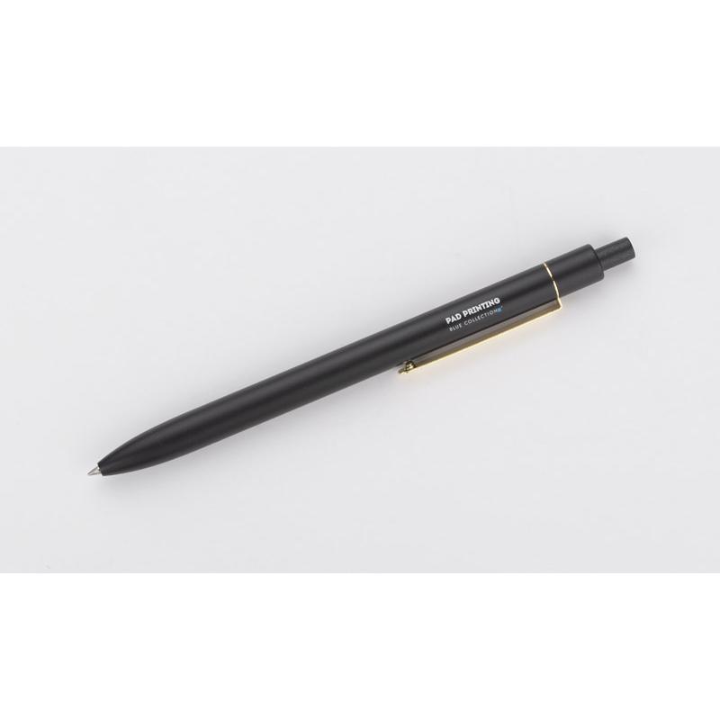 Stylowy długopis aluminiowy z matowym wykończeniem i klipem w kolorze złotym.