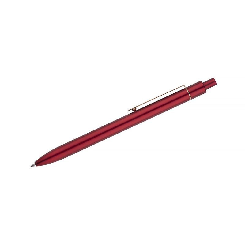 Stylowy długopis aluminiowy z matowym wykończeniem i klipem w kolorze złotym.