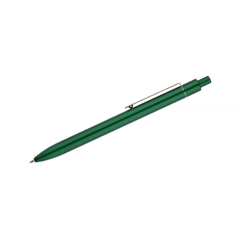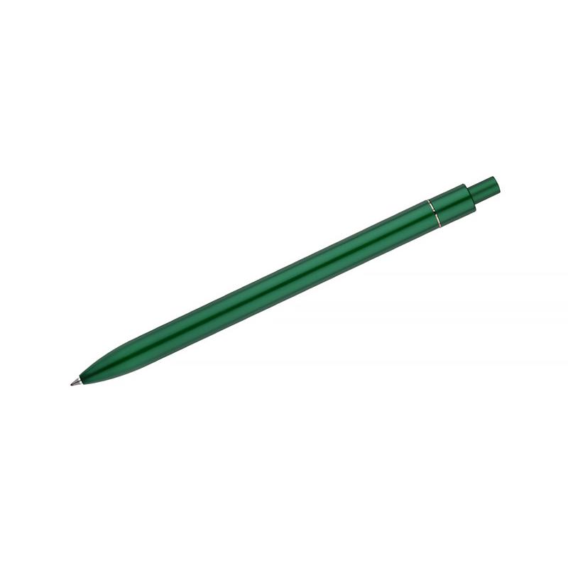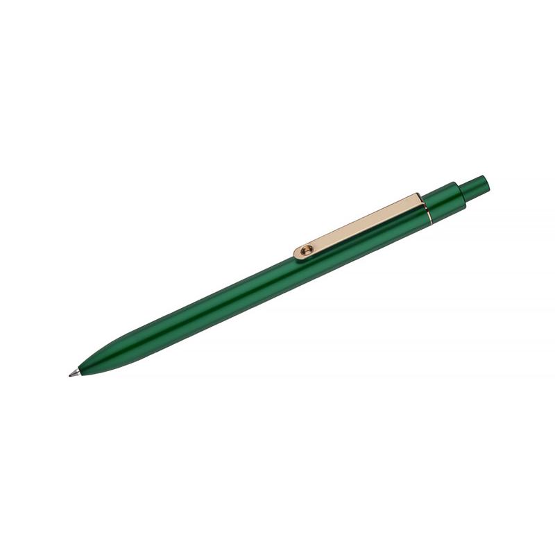 Stylowy długopis aluminiowy z matowym wykończeniem i klipem w kolorze złotym.