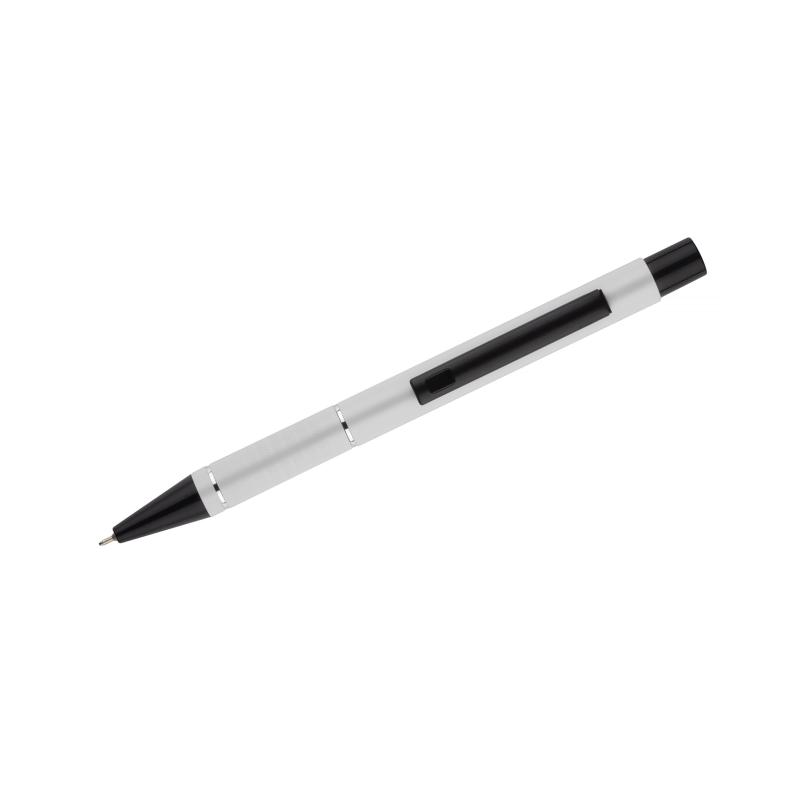 Długopis SATO łączy w sobie niezawodność, piękno i funkcjonalność. Wykonany jest z lekkiego aluminium, a czarne wykończenie nadaje mu elegancji i prestiżu, sprawiając, że doskonale sprawdzi się jako produkt reklamowy w każdej branży. Korpus długopisu został ozdobiony dwoma srebrnymi ringami oraz paskami o delikatnie chropowatej strukturze, dodając mu przyjemnie sensorycznego wymiaru. Wkład z tuszem pół żelowym zapewnia niesamowicie gładkie i płynne pisanie. Grubość linii 0,7 mm pozwoli użytkownikom cieszyć się wyjątkowo precyzyjnymi notatkami, podkreśleniami i listami.