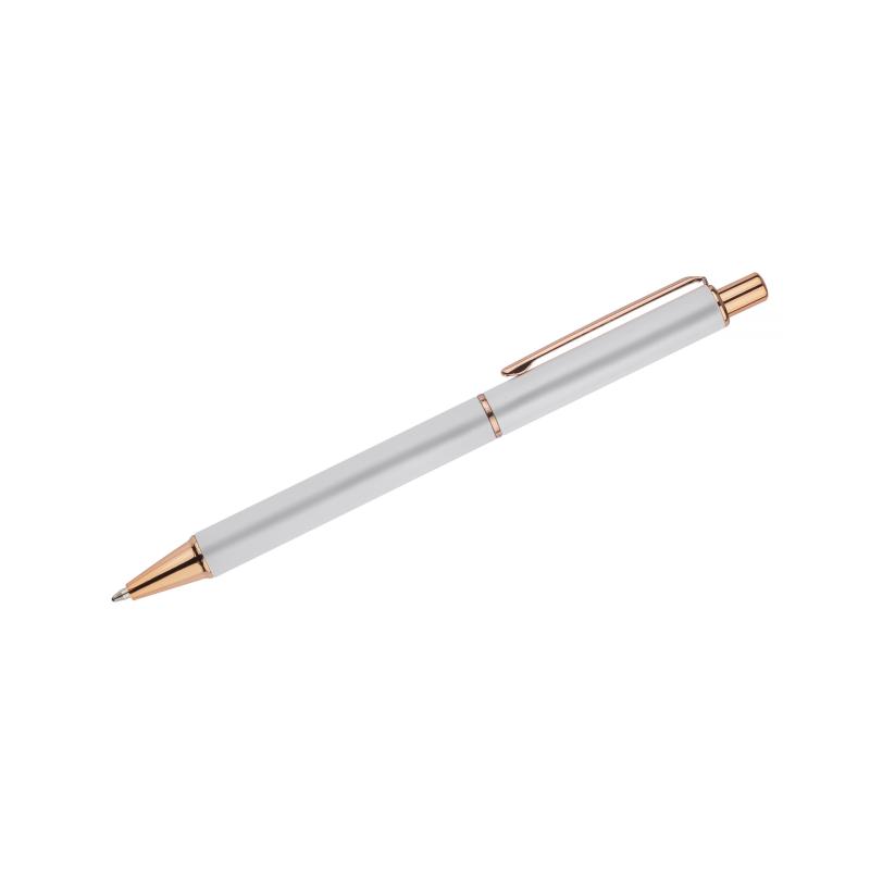 Matowy długopis z akcentami w kolorze różowego złota. Korpus oraz klips wykonane z metalu