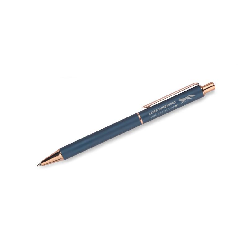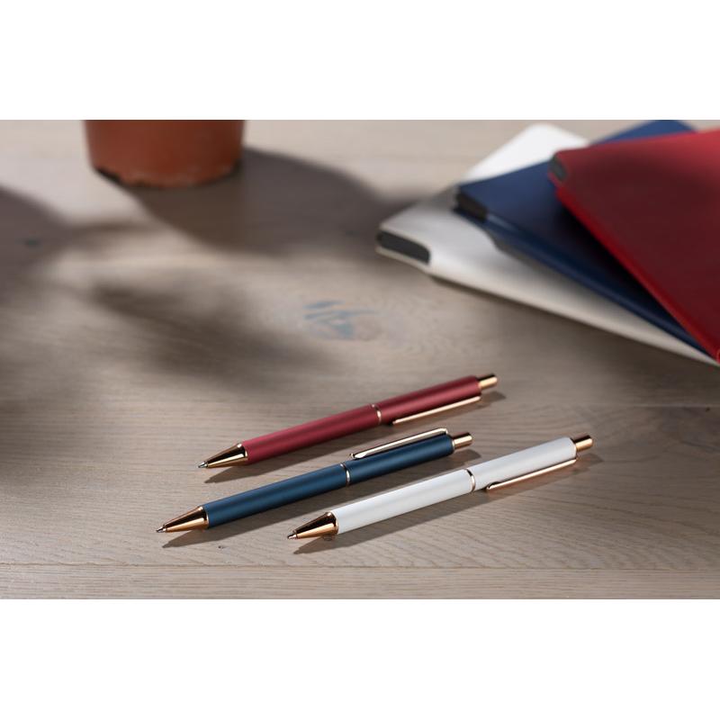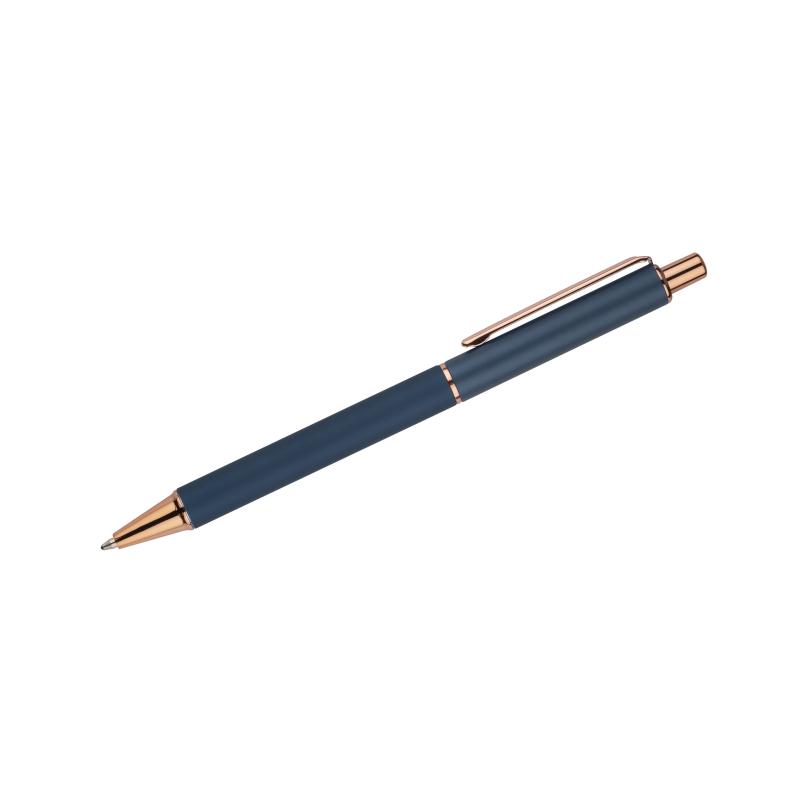 Matowy długopis z akcentami w kolorze różowego złota. Korpus oraz klips wykonane z metalu