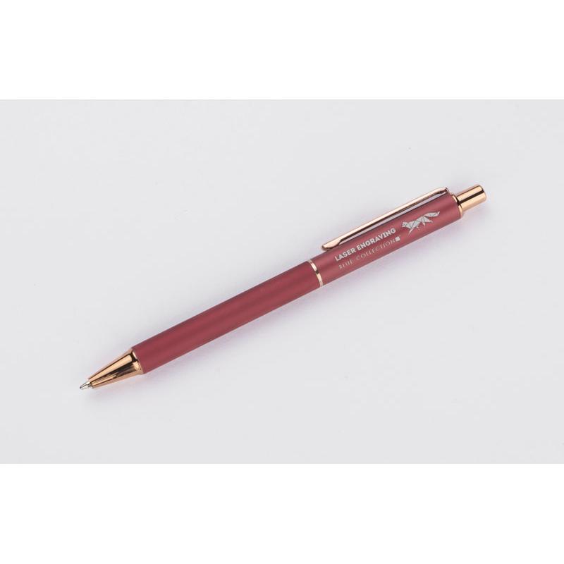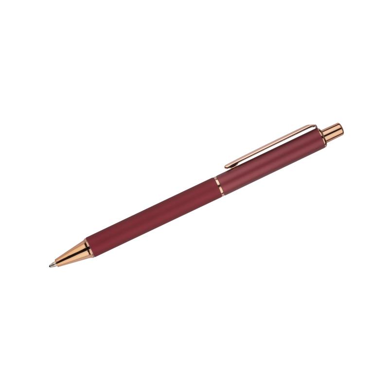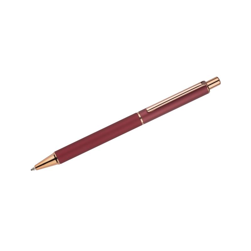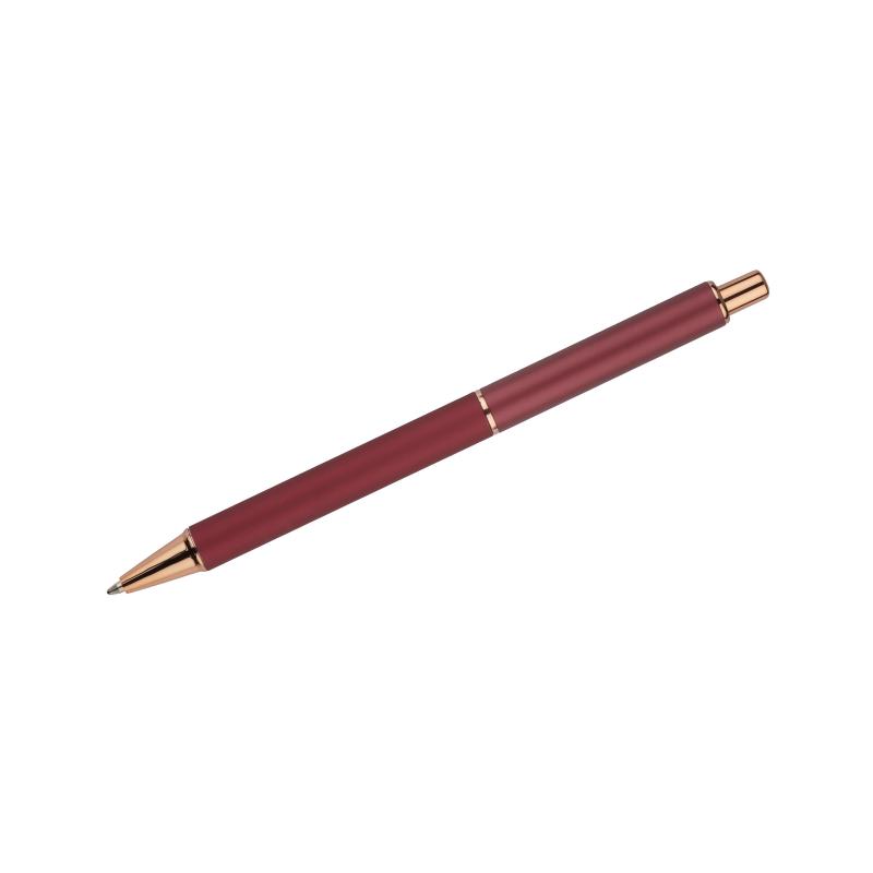 Matowy długopis z akcentami w kolorze różowego złota. Korpus oraz klips wykonane z metalu.