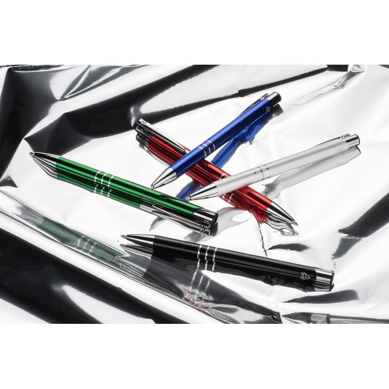 Przedstawiamy bestsellerowy długopis KALIPSO o eleganckiej chromowanej powierzchni, teraz dostępny w nowej, ekologicznej odsłonie: wykonany z aluminium z recyklingu (rKALIPSO). Ten automatyczny długopis z trzema stylowymi ringami i niebieskim wkładem, łączy nowoczesny design z funkcjonalnością. Chromowana powierzchnia nadaje mu prestiżowy wygląd, idealny do profesjonalnych zastosowań. Możliwość znakowania logo na powierzchni czyni go doskonałym narzędziem promocyjnym.