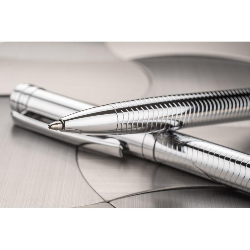 Długopis FIL to symbol solidności, elegancji i wyrafinowanego stylu. Wykonany z najwyższej jakości metalu, długopis zapewnia niezrównaną trwałość i niezawodność, nawet przy intensywnym codziennym użytkowaniu. Unikalny wzór na korpusie dodaje mu niepowtarzalnego uroku, a praktyczny klips umożliwia bezpieczne przenoszenie długopisu w kieszeni czy notesie. Górna część korpusu została zaprojektowana z myślą o personalizacji, co czyni go doskonałym narzędziem promocyjnym. Długopis posiada obrotowy mechanizm wysuwania wkładu.