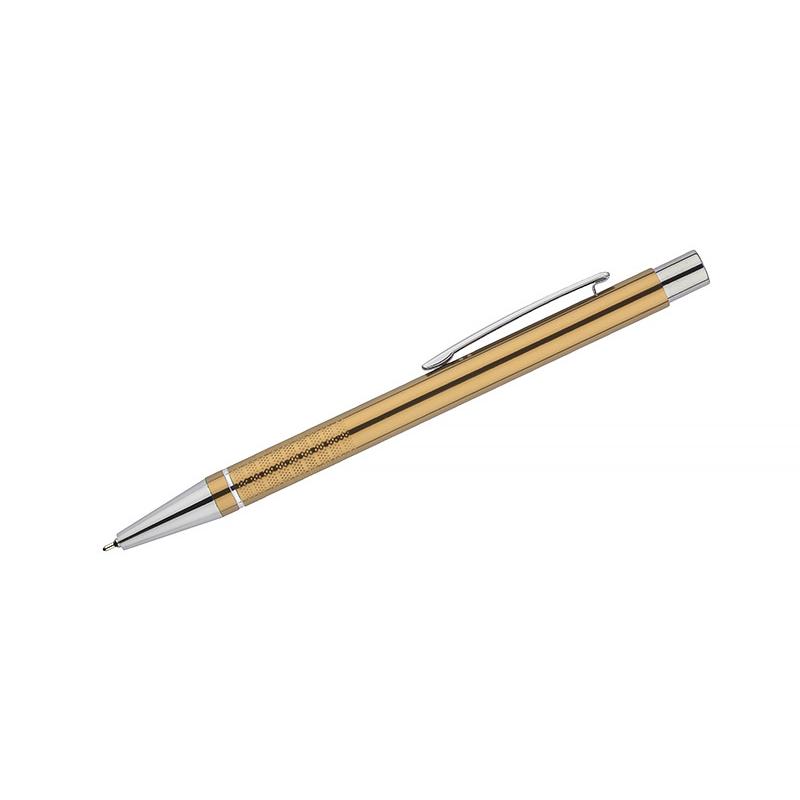 Długopis BONITO to elegancki metalowy długopis w metalicznych kolorach z chromowanymi wykończeniami. Wykonany z wysokiej jakości aluminium, korpus długopisu ozdobiony jest srebrnym ringiem oraz paskami o delikatnie chropowatej strukturze. Długopis wyposażony jest w wkład z tuszem półżelowym w kolorze czarnym o grubości 0,7 mm.