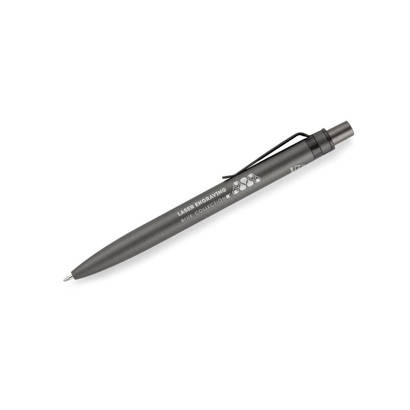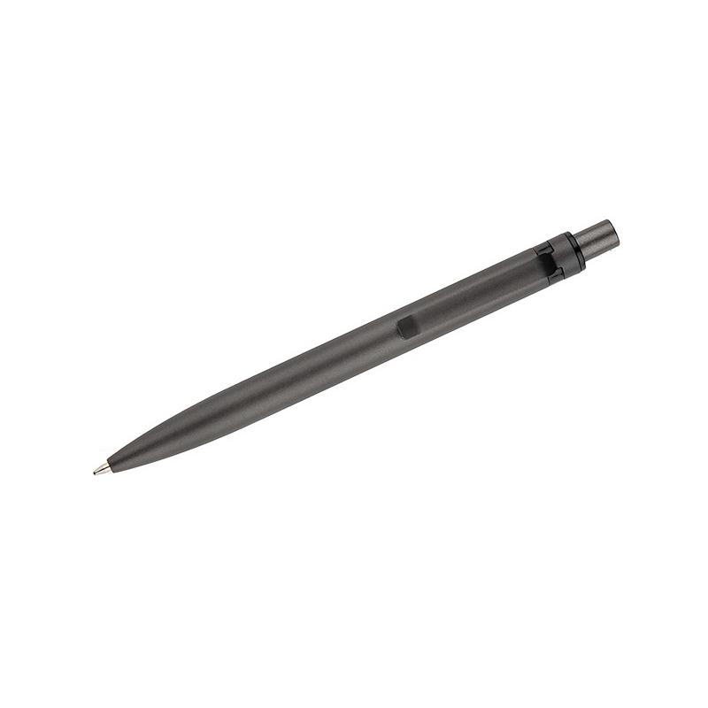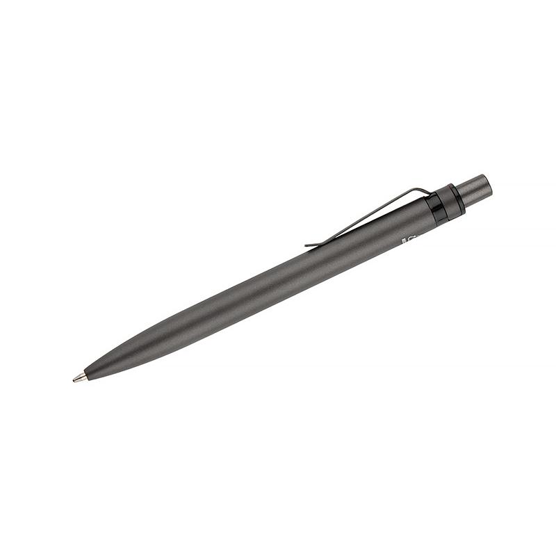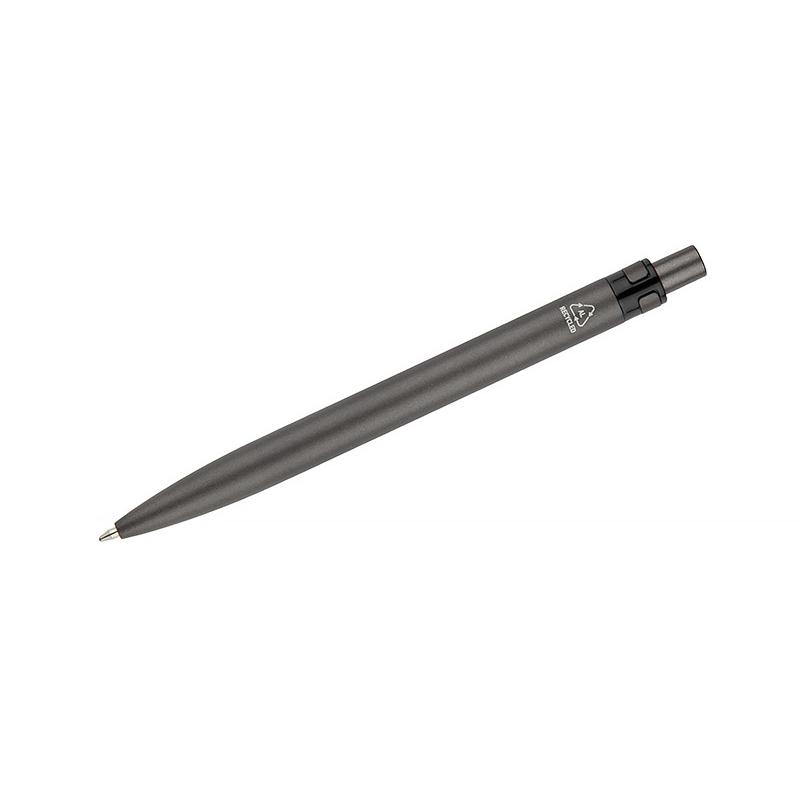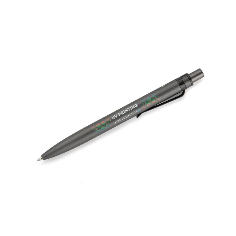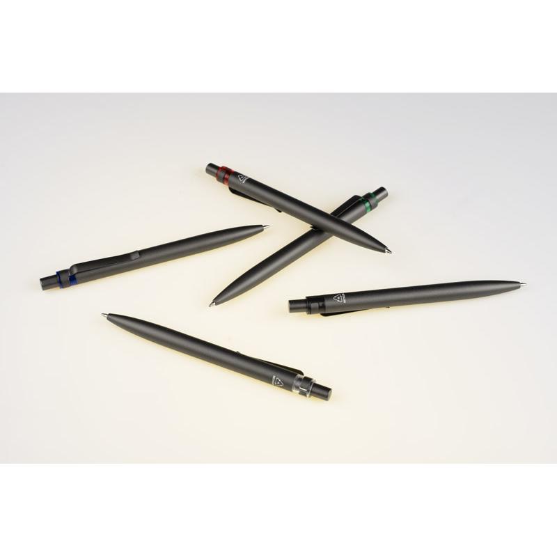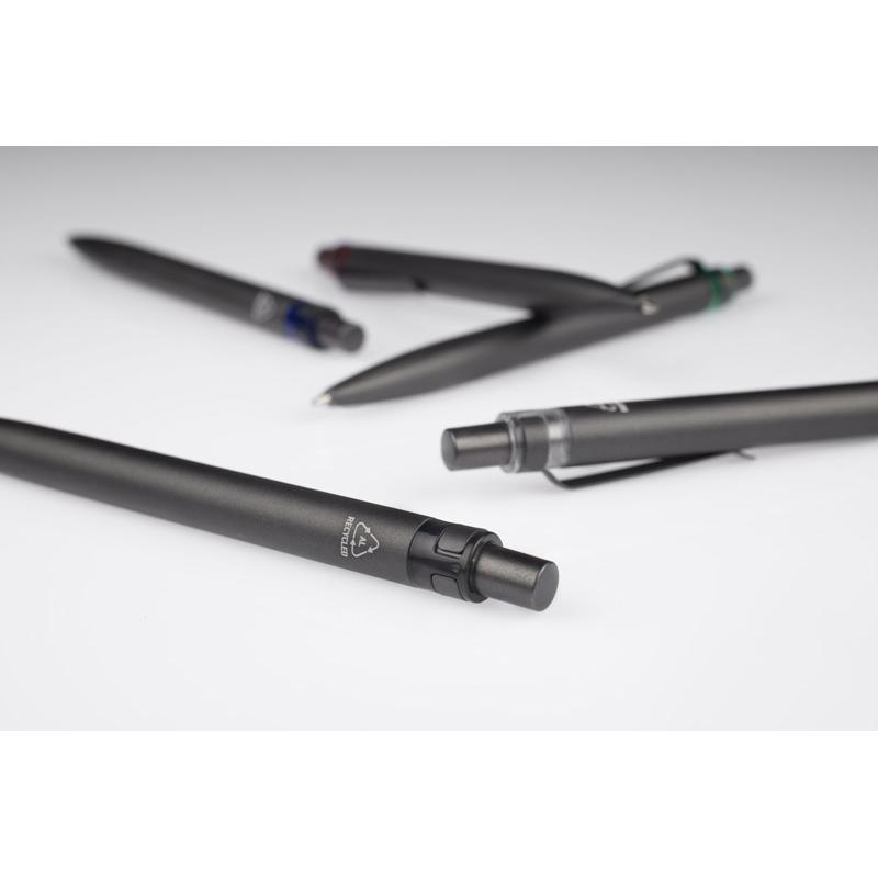 Długopis RAL wykonany jest z recyklingowanego aluminium w eleganckim, grafitowym kolorze z chromowanym wykończeniem. Aluminiowy klips zakończony kolorowym akcentem nadaje mu nowoczesny i rozpoznawalny wygląd. Mechanizm wysuwu jest automatyczny, co zapewnia wygodę i szybkie użycie w każdej sytuacji. Smukła forma oraz przyjemny w dotyku korpus gwarantują komfort pisania. Wkład typu G2 o grubości linii 1,0 mm zapewnia płynny i precyzyjny zapis. To praktyczny gadżet reklamowy, który świetnie sprawdzi się w biurze i podczas spotkań biznesowych.