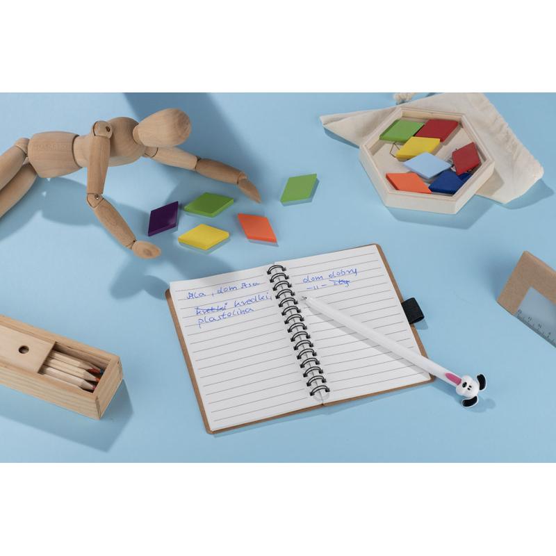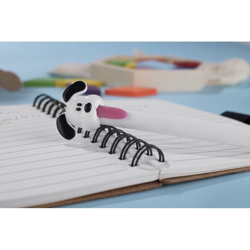 Długopis GUFI to zabawny gadżet biurowy z końcówką w kształcie głowy pieska. Mechanizm otwierania aktywowany przez pociągnięcie języka sprawia, że pisanie staje się przyjemnym i niecodziennym doświadczeniem. Wyposażony w żelowy wkład o grubości pisania 0,5 mm zapewnia płynny i równy ślad. Lakierowane wykończenie nadaje powierzchni połysk i gładkość. GUFI świetnie sprawdzi się jako kreatywny upominek reklamowy lub drobny prezent biurowy.