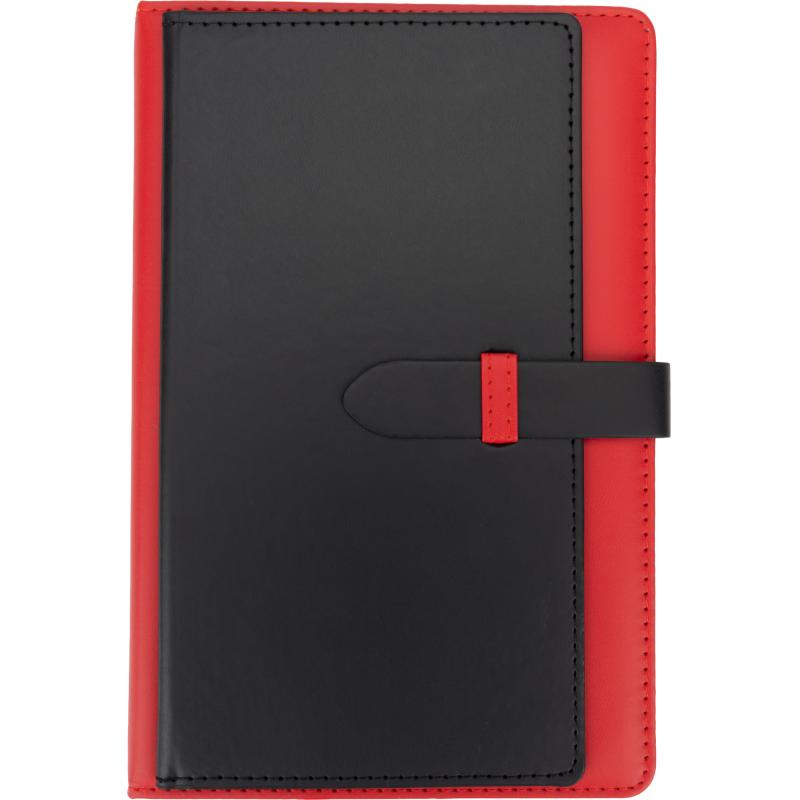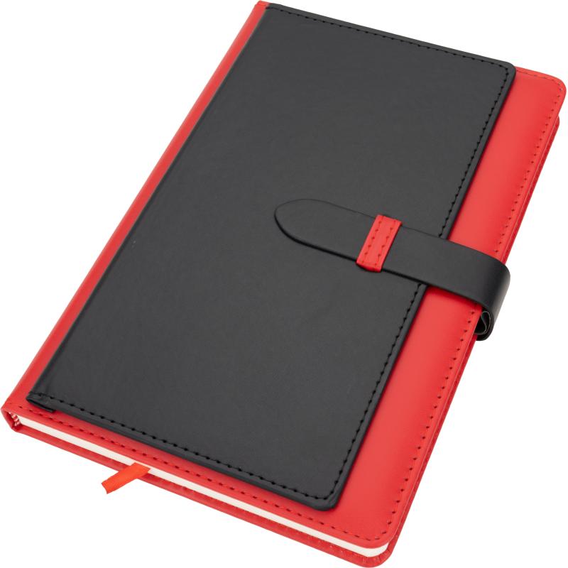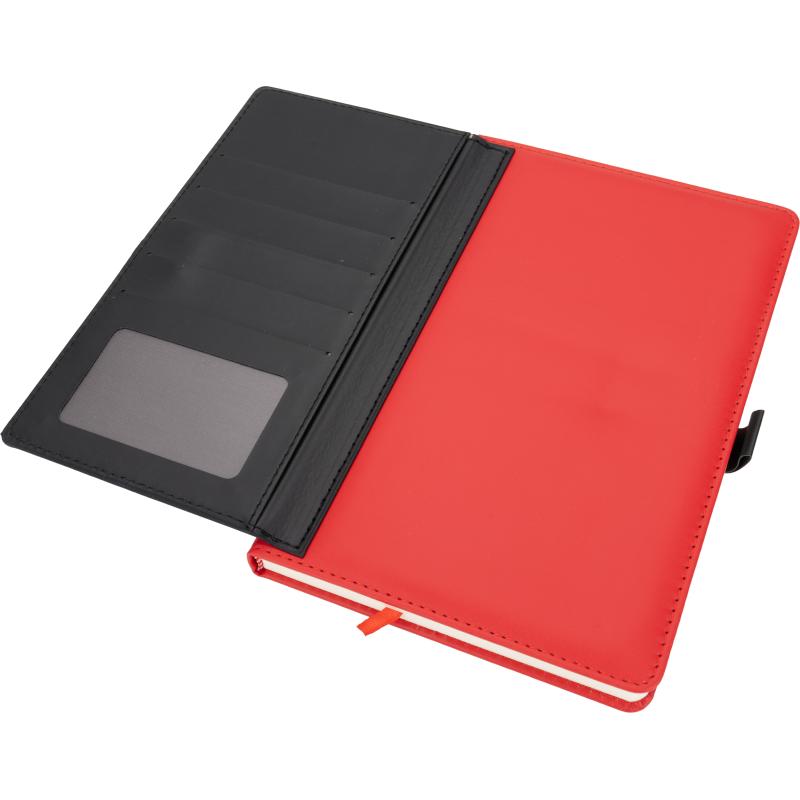 Notatnik A5 w okładce z PU, ze 128 kartkami w linie, miejscem na długopis i wizytownikiem na 5 wizytówek.