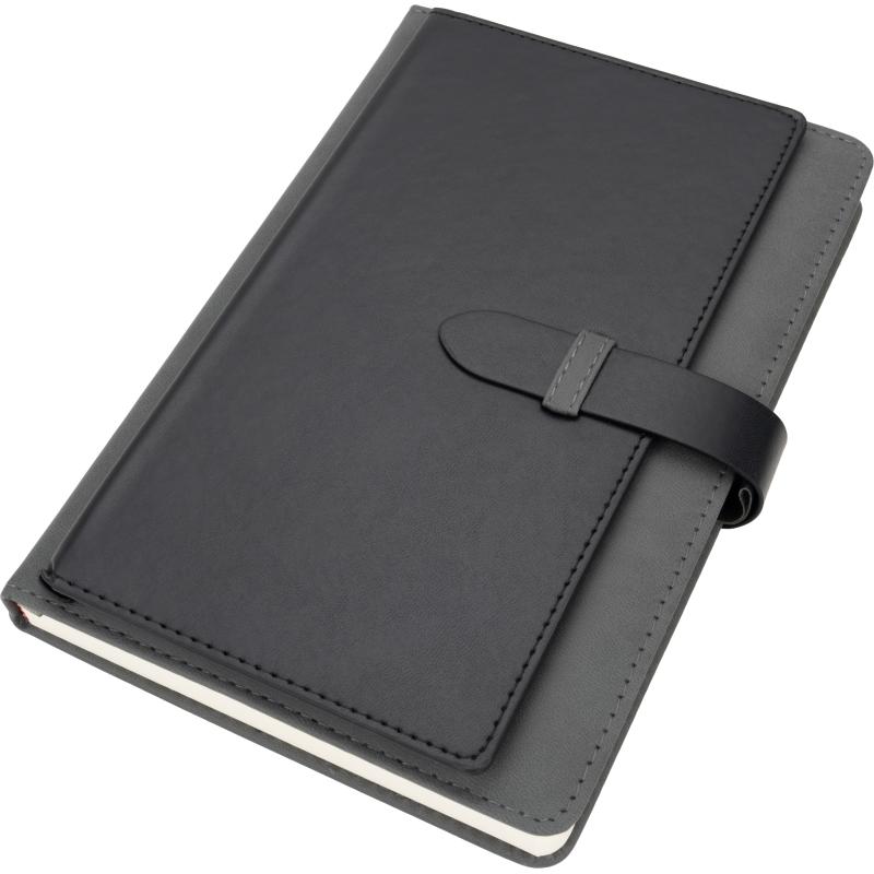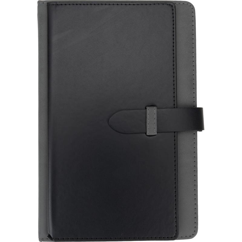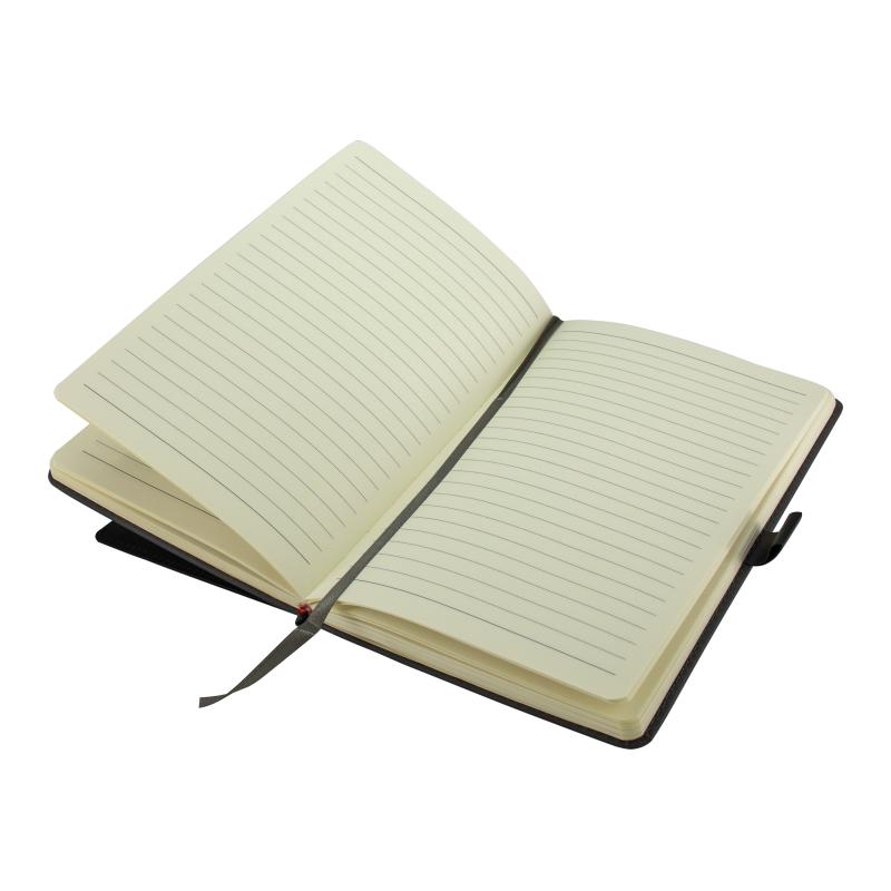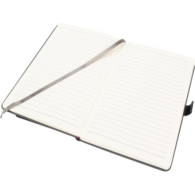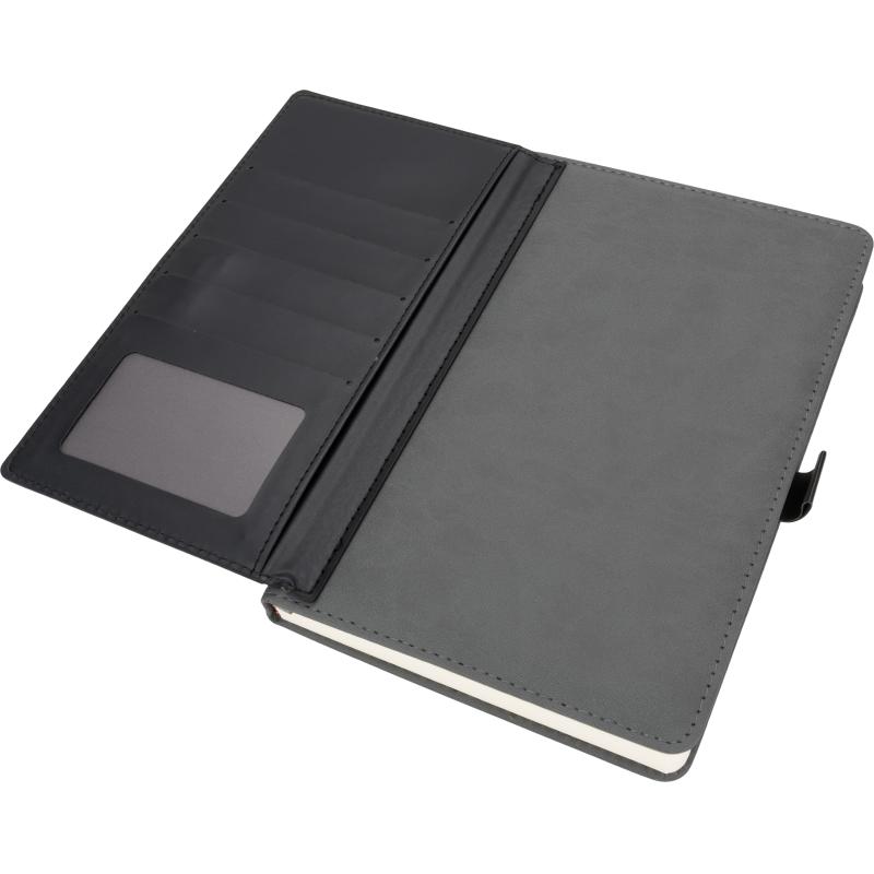 Notatnik A5 w okładce z PU, ze 128 kartkami w linie, miejscem na długopis i wizytownikiem na 5 wizytówek.