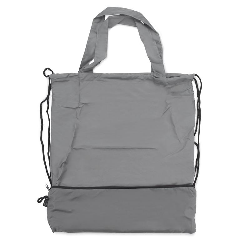 Worek na sznurkach z parasolem RAINY wykonany jest z poliestru RPET, co czyni go bardziej przyjaznym środowisku. Środek worka jest jednokomorowy. Oprócz tradycyjnych sznurków posiada jeszcze rączki o długości 44 cm, dzięki czemu może być używany także jako torba na zakupy. Na dole worka znajduje się zamykana na zamek kieszeń, w której schowany jest dołączony do zestawu parasol, także wykonany z poliestru RPET.