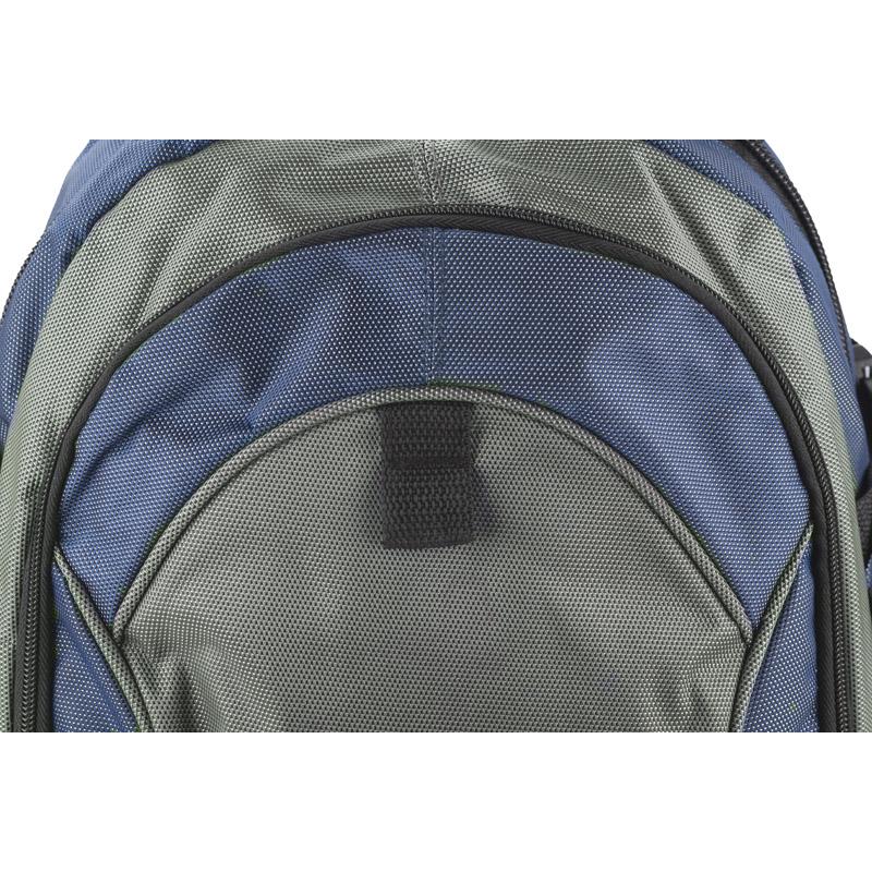 Profesjonalny plecak turystyczny wykonany z niezwykle mocnego poliestru 1680D wzmocnionego technologią RIP-STOP, która dodatkowo czyni materiał wyjątkowo odpornym na rozdarcia. Wzmocniona wodoodporność materiału pozwala na swobodne podróżowanie także przy niesprzyjającej pogodzie. Komora główna z kieszenią na plecach i małą kieszonką na zamek oraz z otworem na przewód słuchawkowy. 1 kieszeń przednia oraz 2 boczne kieszenie siateczkowe. Plecak ściągany paskami bocznymi, wyposażony w karabińczyk. Szelki z grubą gąbką, od spodu wykończone siateczką. Usztywniane plecy. Plecak łączy w sobie funkcjonalność, wygodę użytkowania oraz wysoką jakość wykonania. Znakowanie haftem jest możliwe, ale wyłącznie pod indywidualne zapytanie.