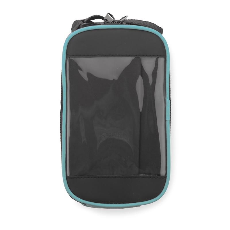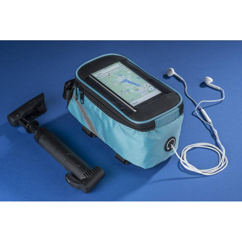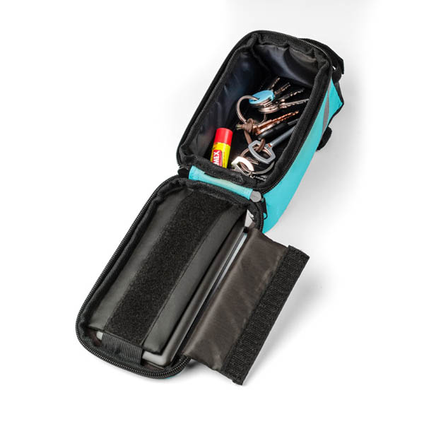 Solidnie mocowana do ramy torba rowerowa posiada pojemną, zapinaną na zamek komorę na drobne przedmioty. Dodatkowo w torbie VELO znajduje się wyjście na słuchawki oraz kieszonka z folią dotykową na smartfona, która umożliwia korzystanie z telefonu bez konieczności wyciągania go z torby. Spoglądanie na nawigację czy sterowanie odtwarzaczem muzyki nie stanowi żadnego problemu, nawet podczas jazdy na rowerze.