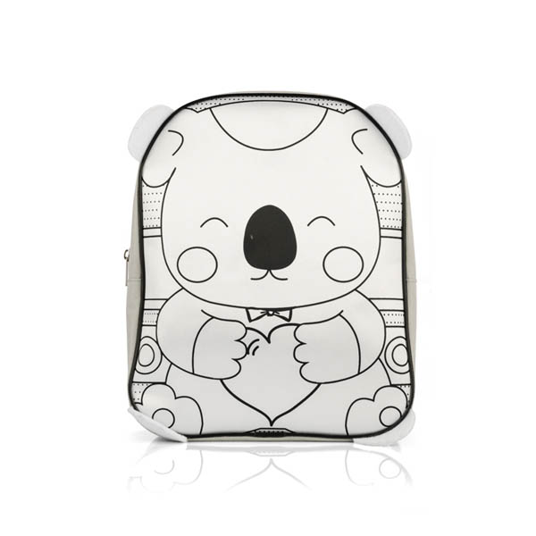 Nieduży plecak z nadrukiem sympatycznego misia do samodzielnego pokolorowania. W zestawie pisaki w 6 kolorach. Plecak TEDDY pomieści niezbędne przedmioty potrzebne małym turystom na pierwsze wyprawy.