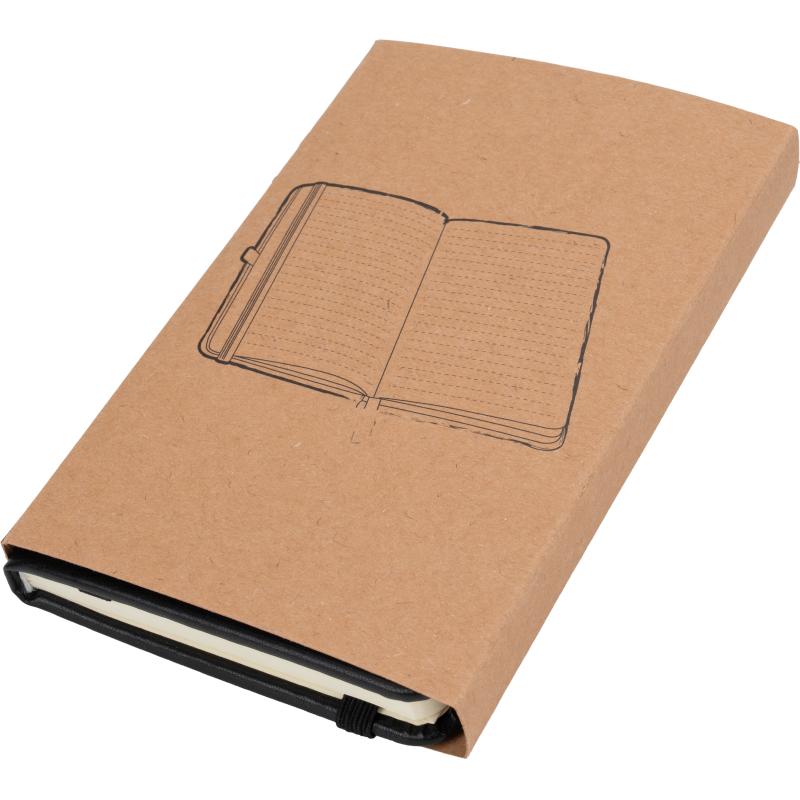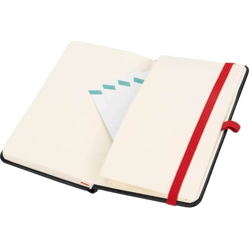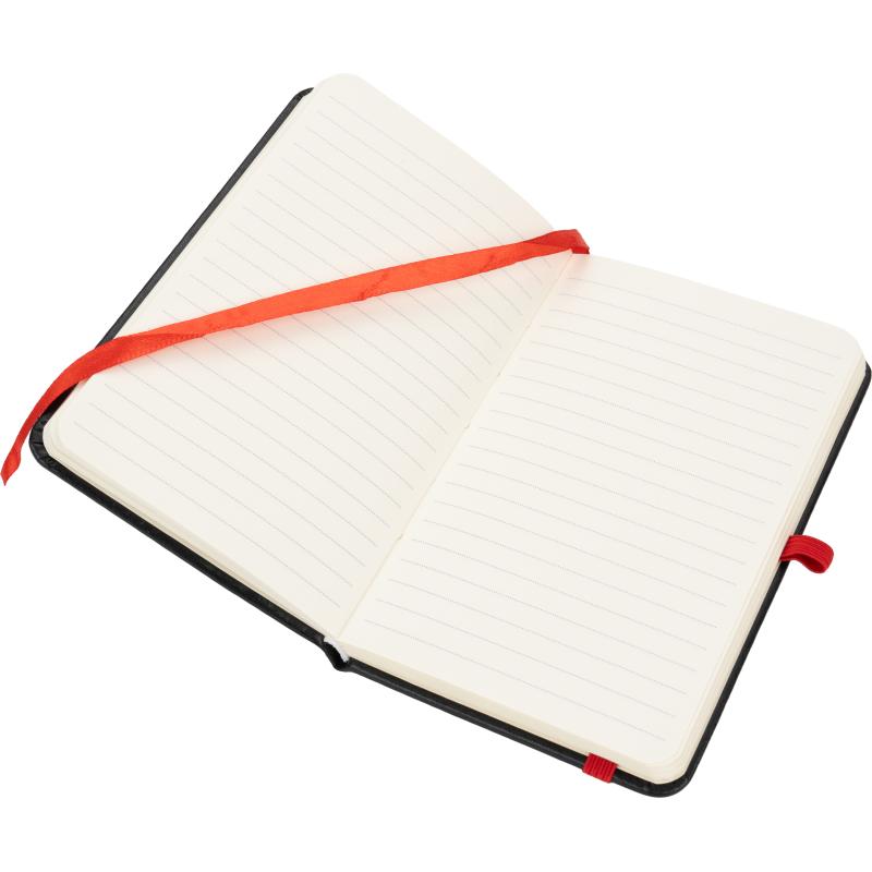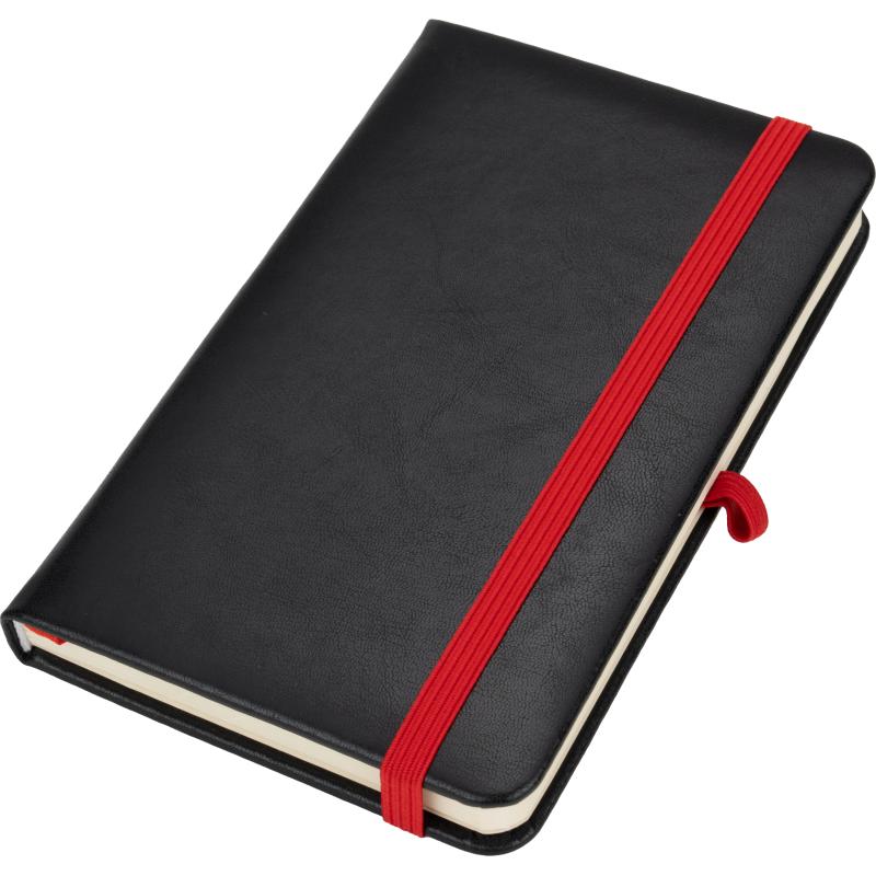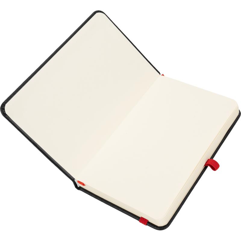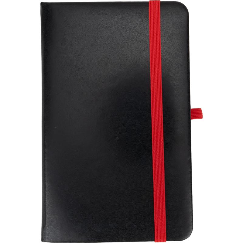 Notatnik A6 w okładce ze skóry syntetycznej, ze 160 stronami w linie, zakładką, pętelką na długopis i gumką do zamykania.
