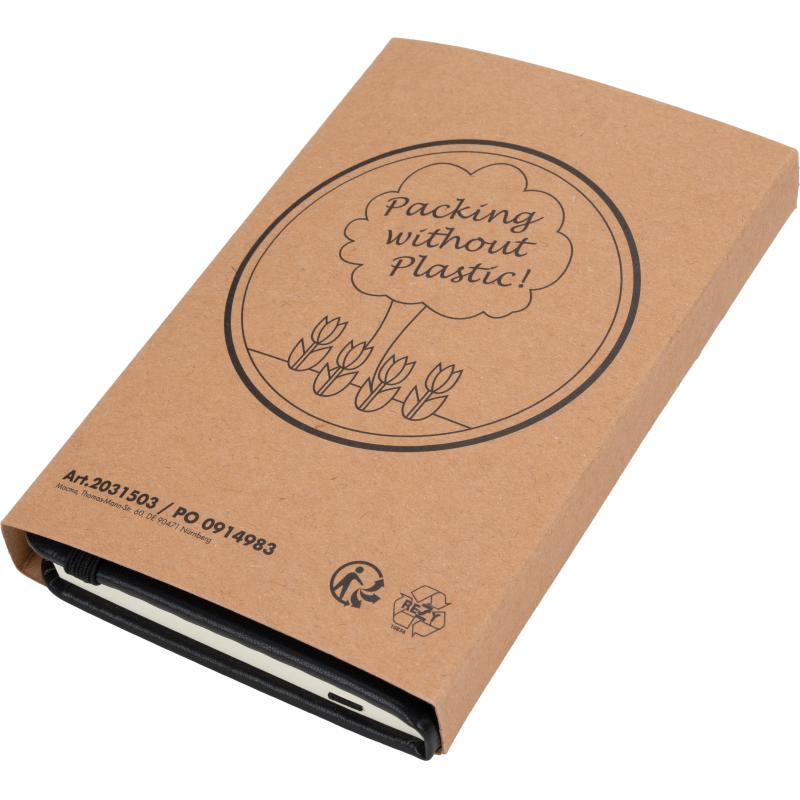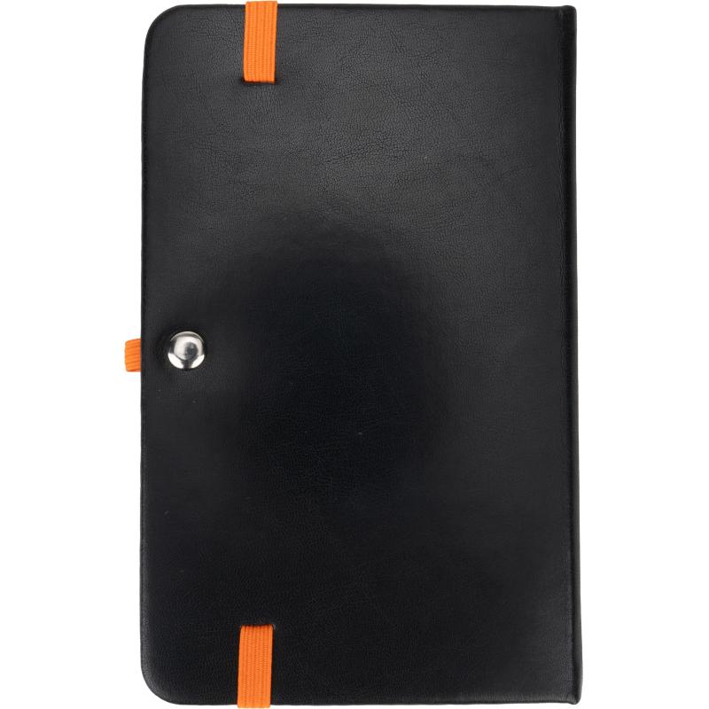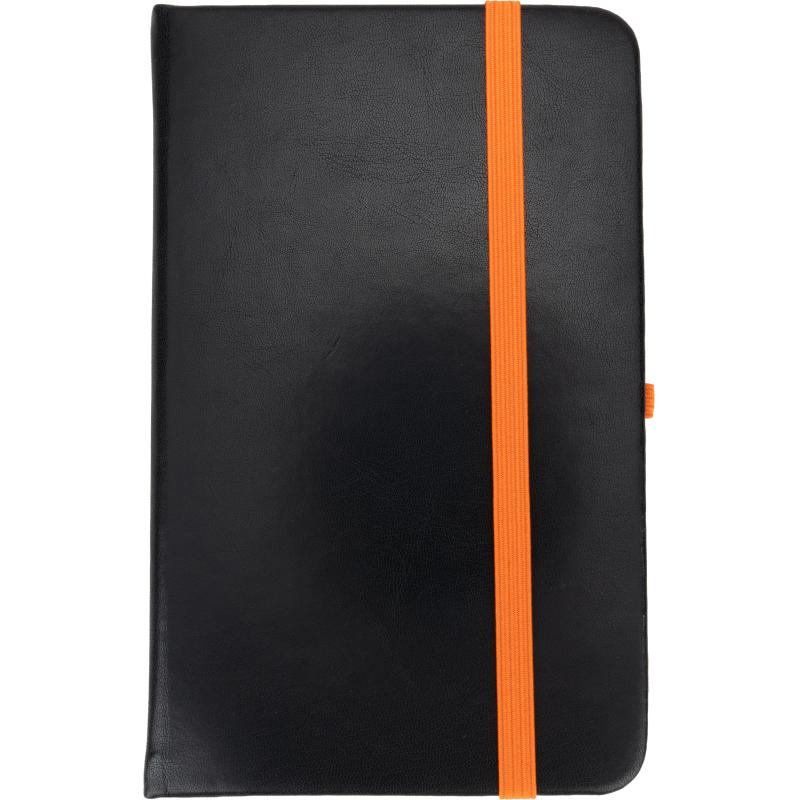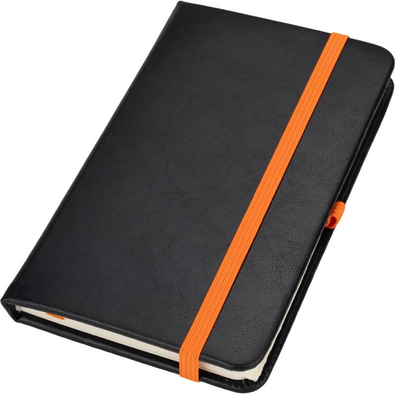 Notatnik A6 w okładce ze skóry syntetycznej, ze 160 stronami w linie, zakładką, pętelką na długopis i gumką do zamykania.