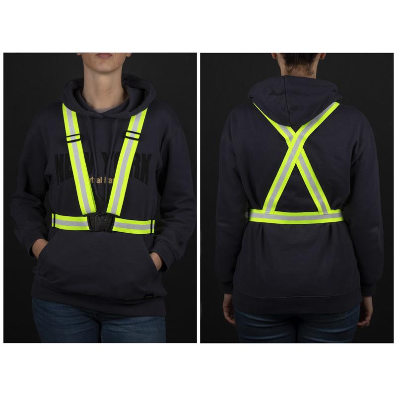 Uniwersalne szelki odblaskowe z możliwością regulacji doskonale sprawdzą się podczas spaceru, biegania lub jazdy na rowerze. Dzięki odblaskowym paskom i jaskrawym kolorom poprawiają widoczność tym samym zwiększając bezpieczeństwo. Szelki po złożeniu zajmują niewiele miejsca dzięki czemu można je nosić zawsze przy sobie. Produkt spełnia normy EN 17353:2020.