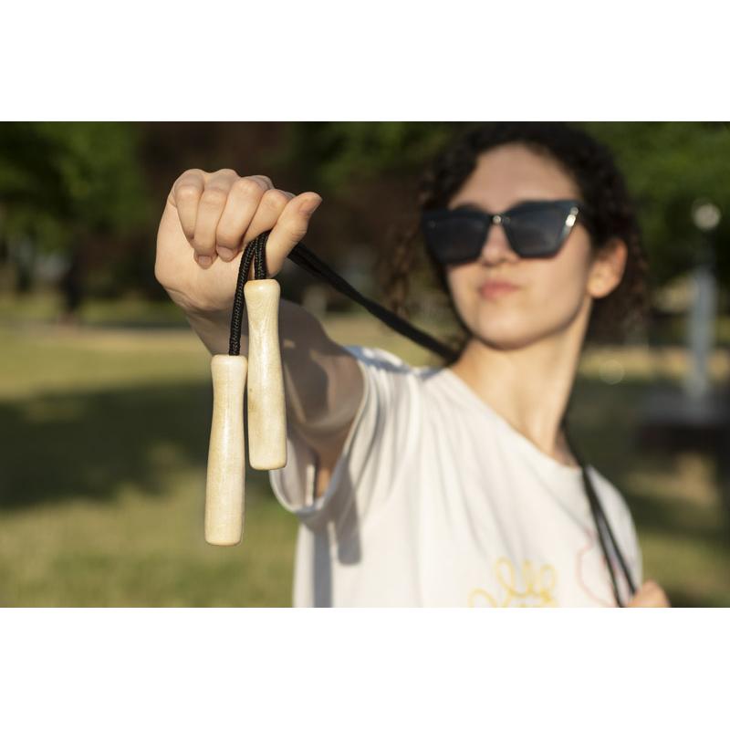 Skakanka jest jednym z tych przyrządów którym zainteresowanie nie słabnie. Skakanie na skakance sprawdzi się jako rozgrzewka, część główna treningu a także może posłużyć do zabawy. Jest to produkt idealny dla dorosłych jak i dla najmłodszych. Skakanka posiada drewniane rączki a linka wykonana jest z poliestru. Wymiary: 2,10 m (skakanka); 119 mm x 25 mm (rączka)
