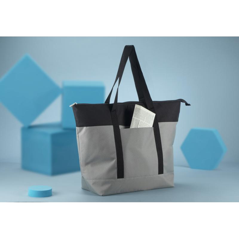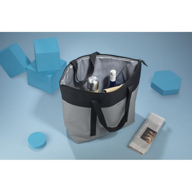 Pojemna torba jednokomorowa na zakupy posiadająca warstwę izolacji termicznej, dzięki czemu dłużej utrzymuje temperaturę produktów. Wykonana z poliestru, posiada zewnętrzną kieszeń. Zastosowana izolacja z pianki EPE pokryta powłoką PEVA.